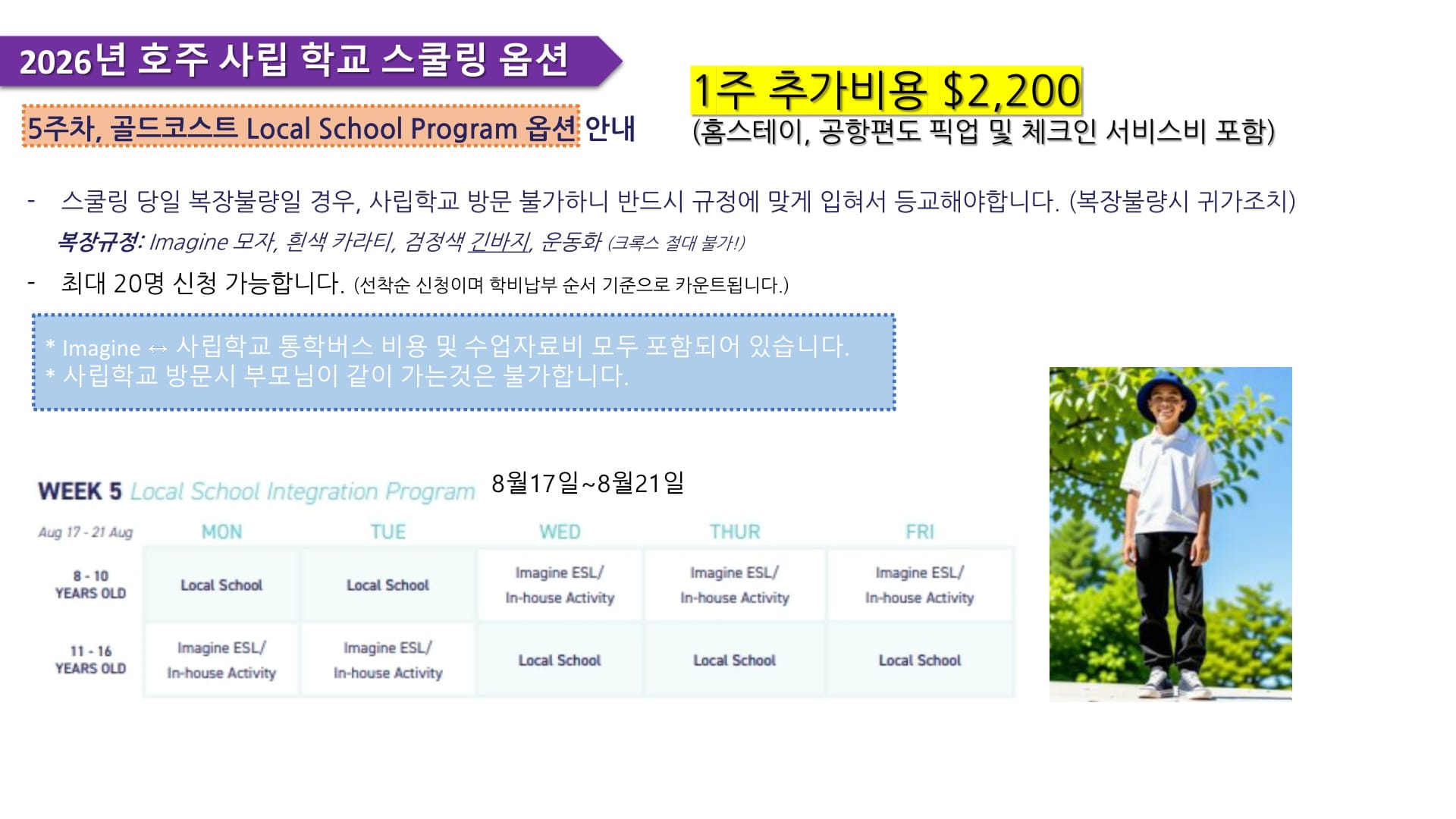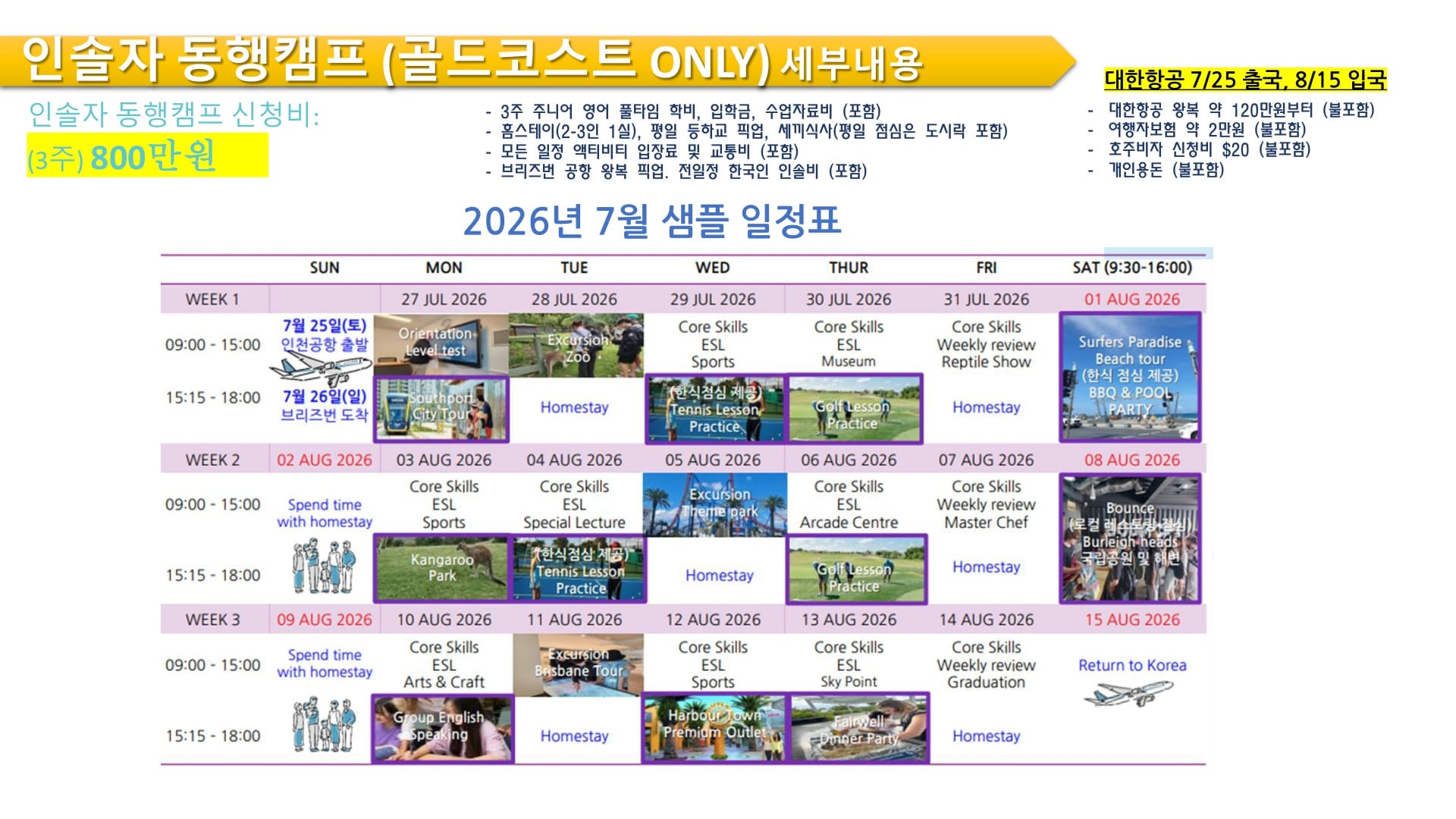 호주영어캠프 2026년 여름 호주 영어 캠프 (골드코스트) 브로셔 2026년 여름 호주 영어 캠프 (골드 코스트) 브로셔입니다. 유학피플 문의 02-554-8666 16 8월 2024 — 2 min read