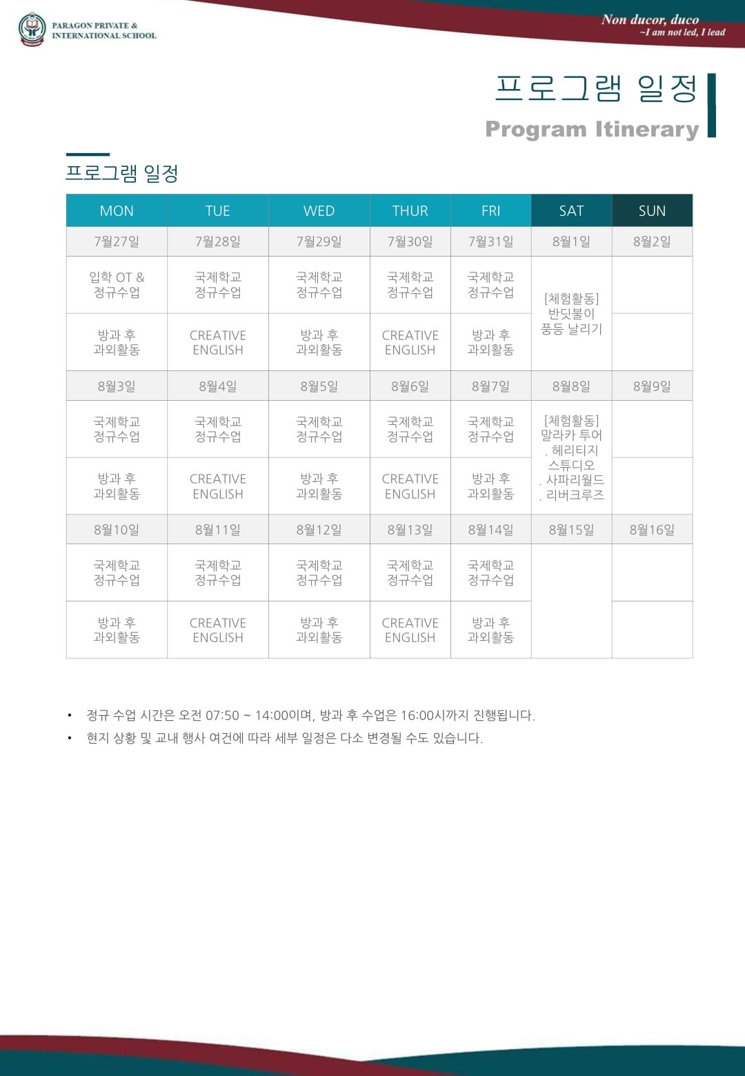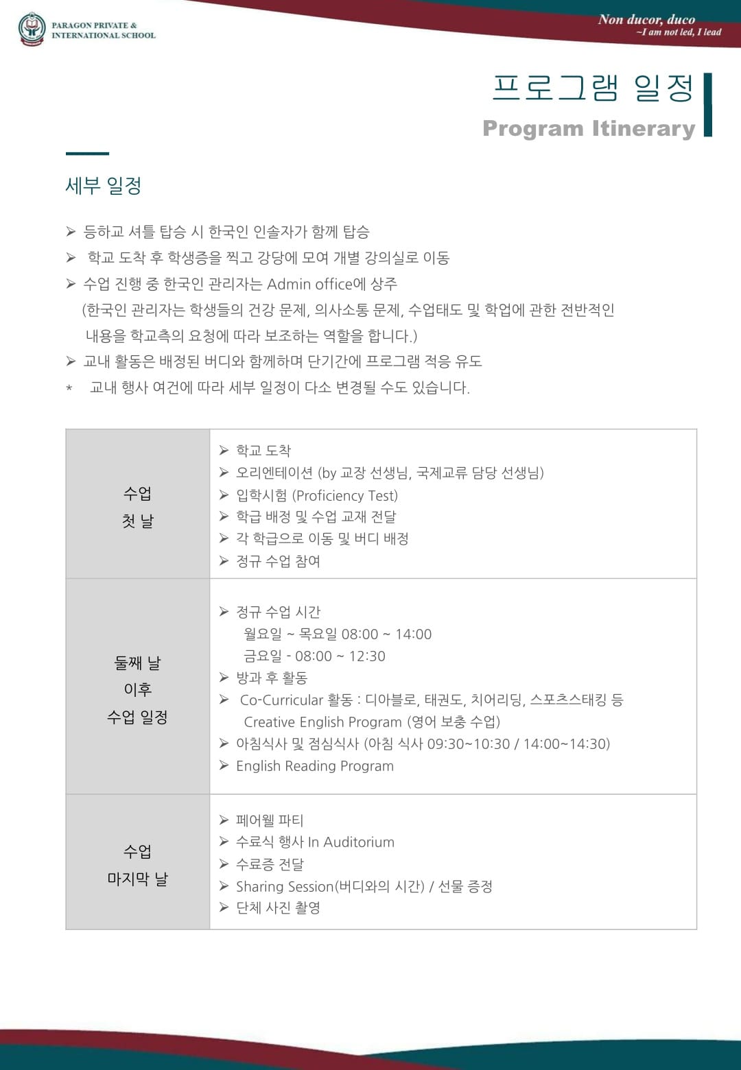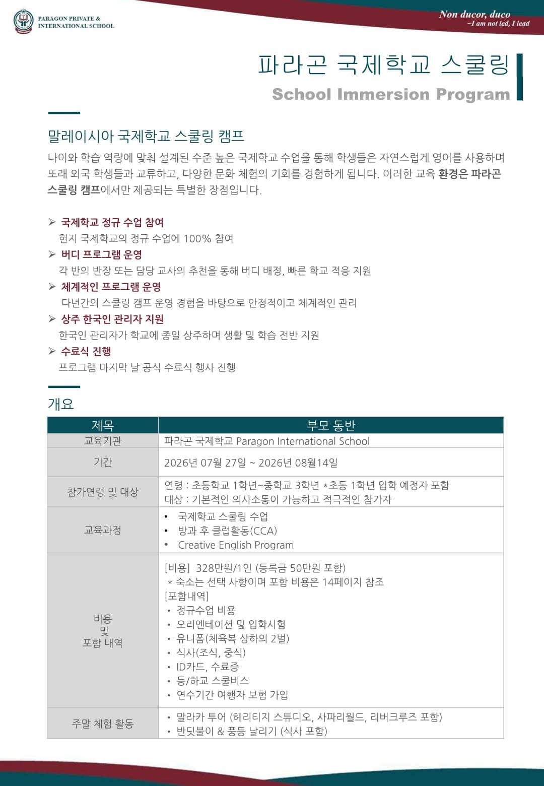 말레이시아스쿨링 2026년 여름 말레이시아 스쿨링 파라곤 캠프 브로셔 (부모님 동반) 2026년 여름 말레이시아 스쿨링 캠프 브로셔입니다. 유학피플 문의 02-554-8666 09 8월 2024 — 2 min read
