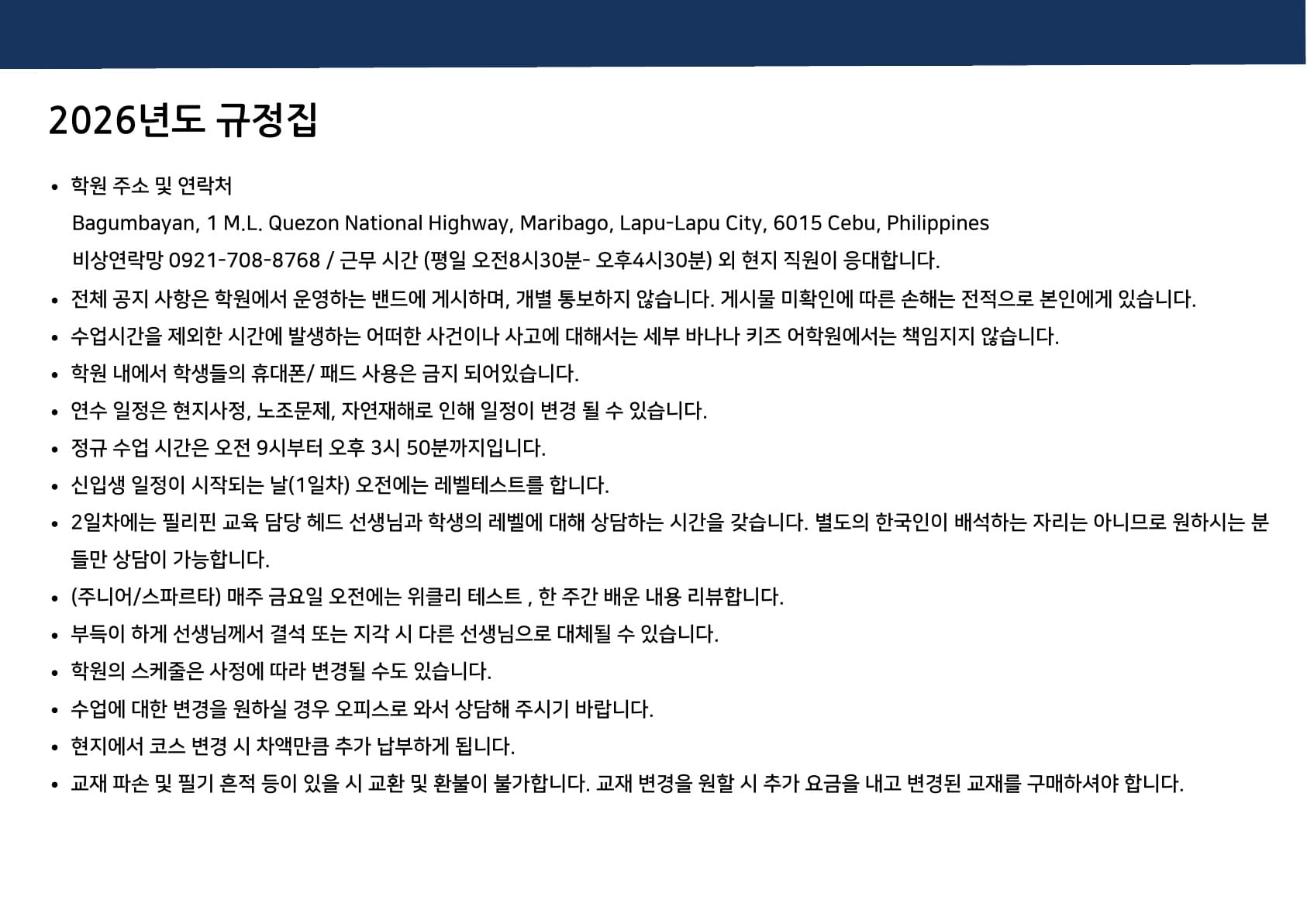 2026년 세부바나나키즈어학원 브로셔입니다.