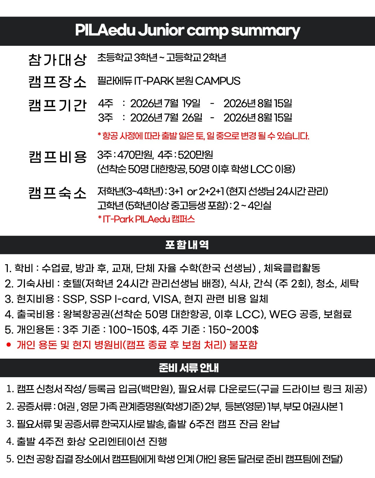 2026년 여름 필라에듀 주니어 영어캠프 브러셔입니다.