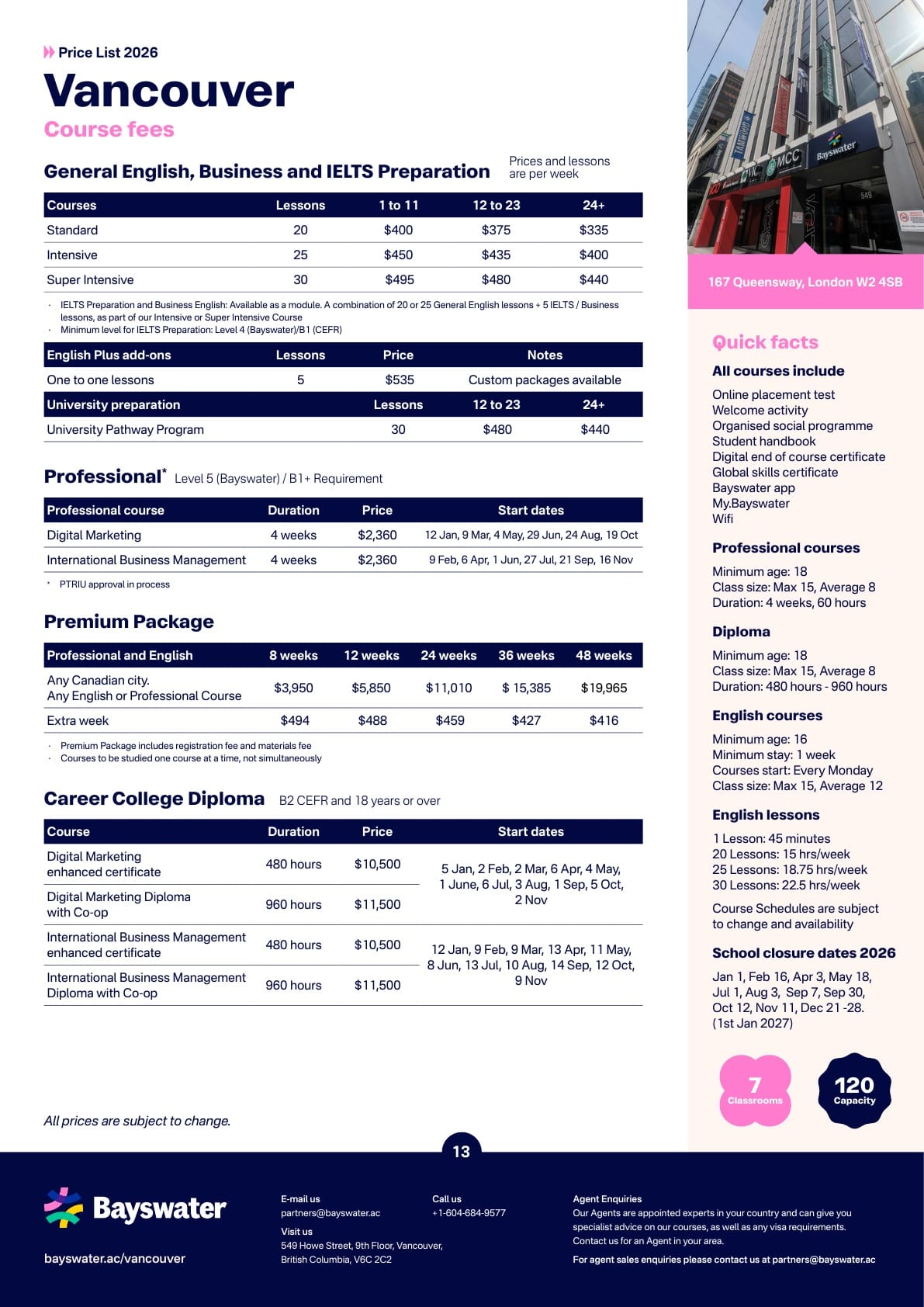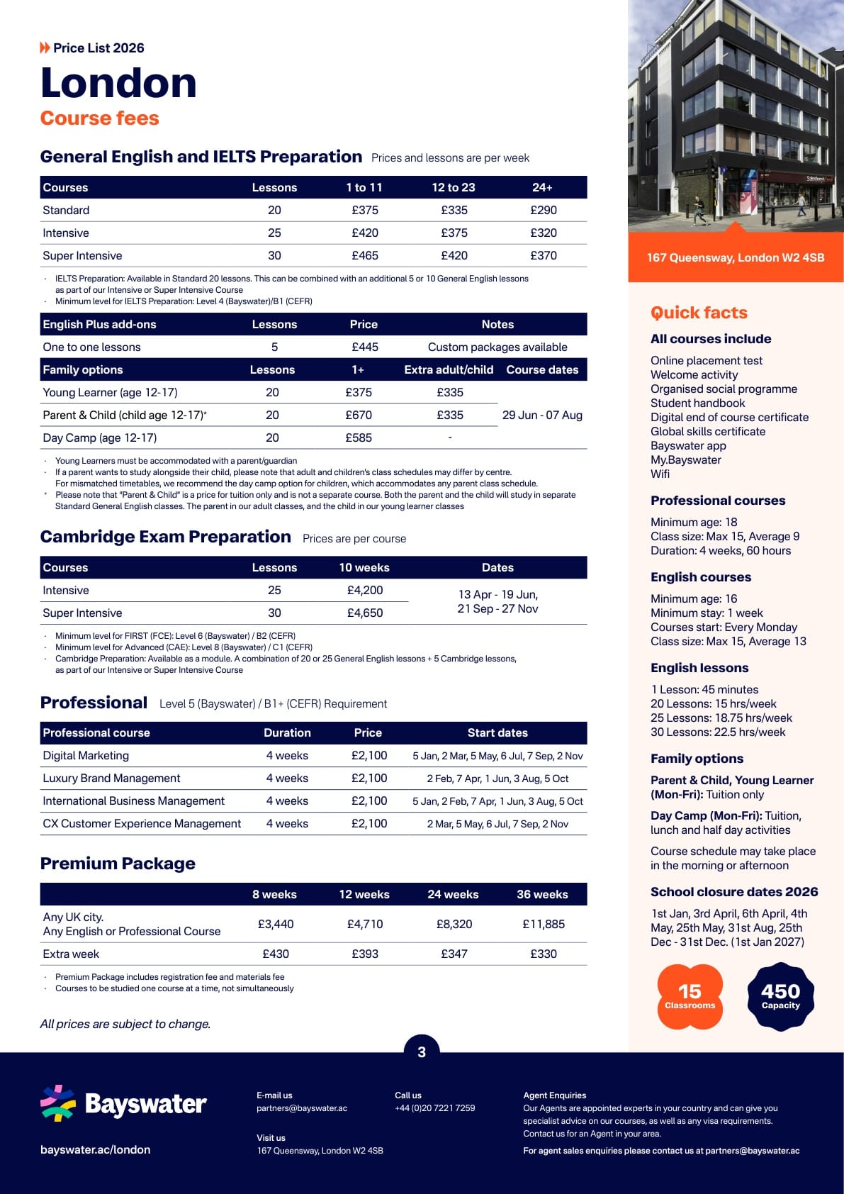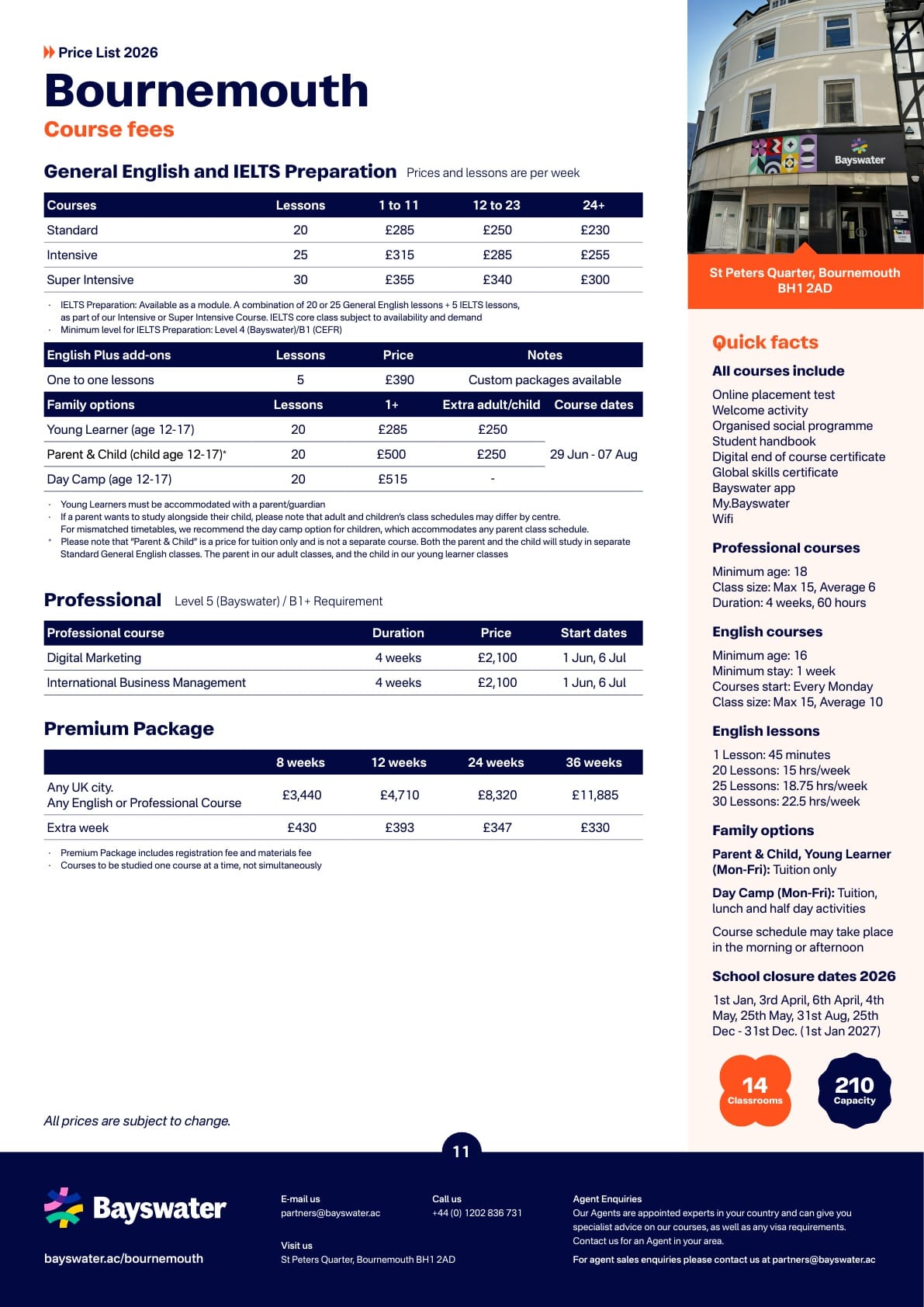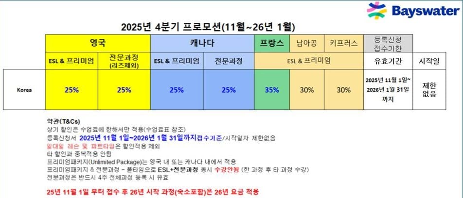 Bayswater(베이스워터) 학비표