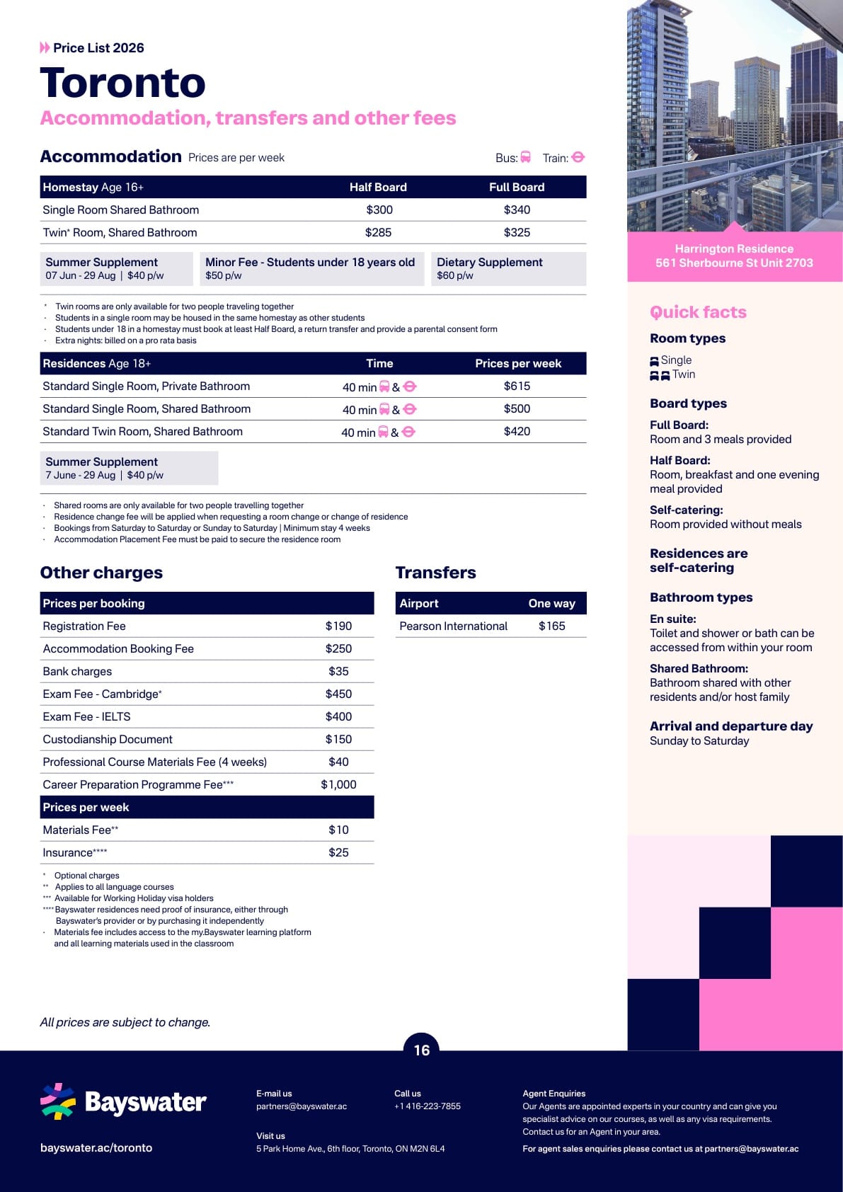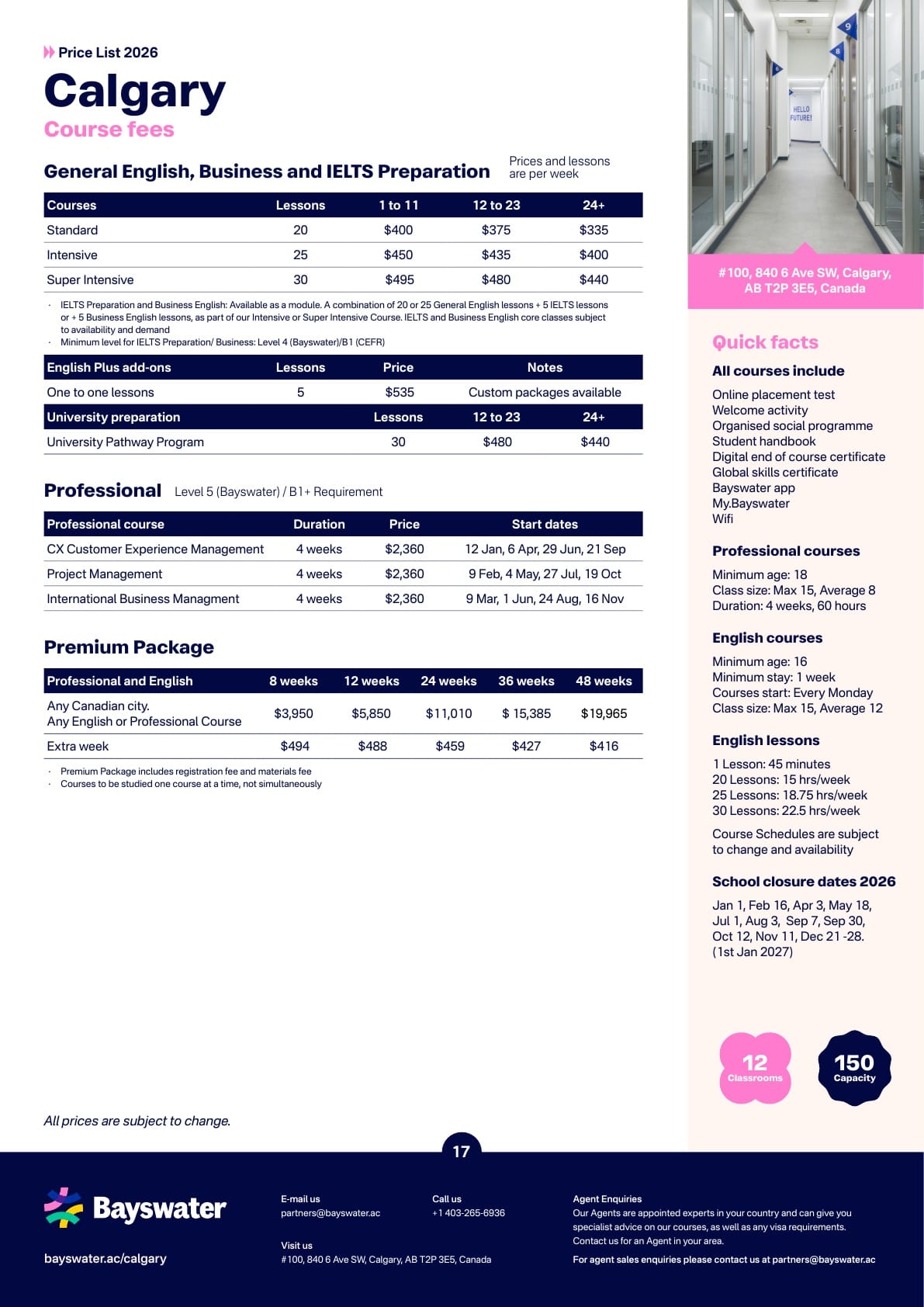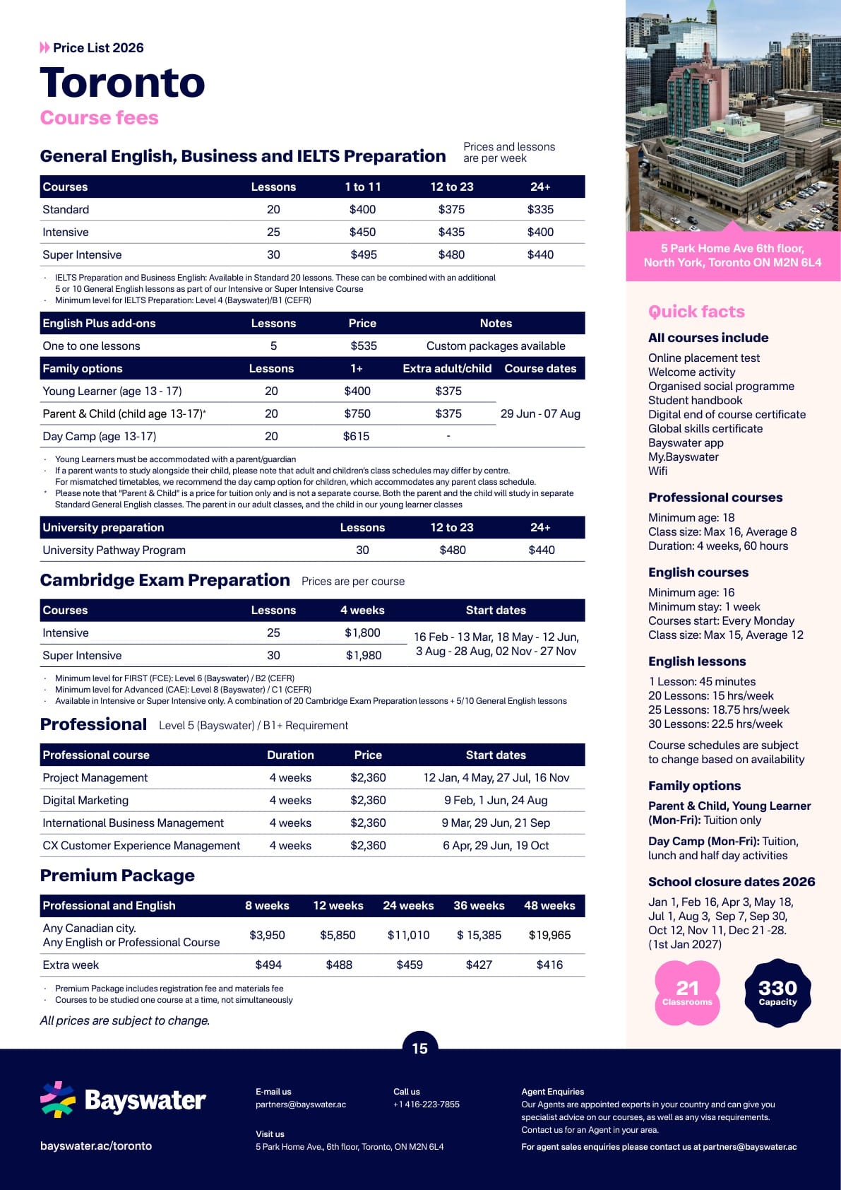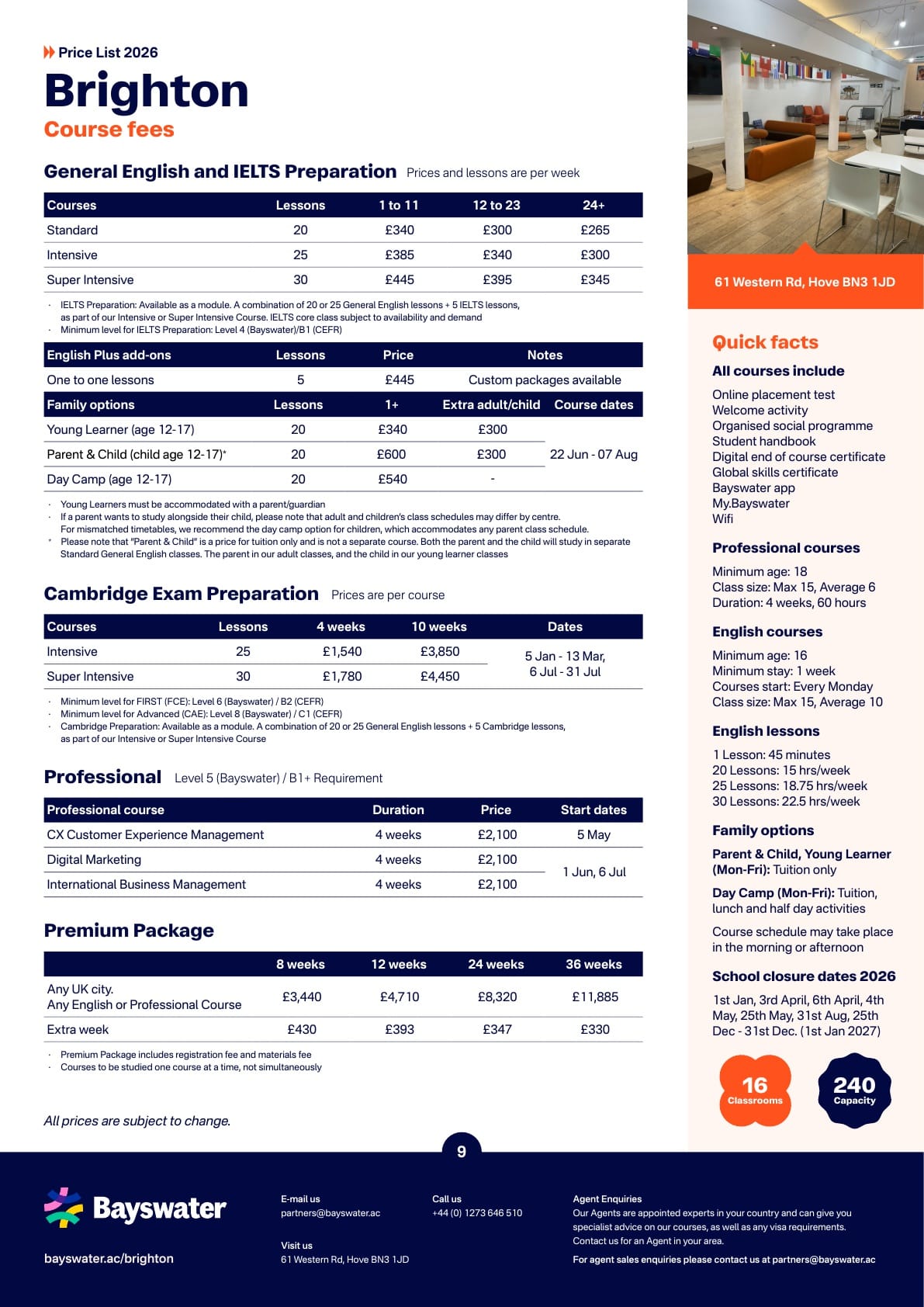 Bayswater(베이스워터) 학비표