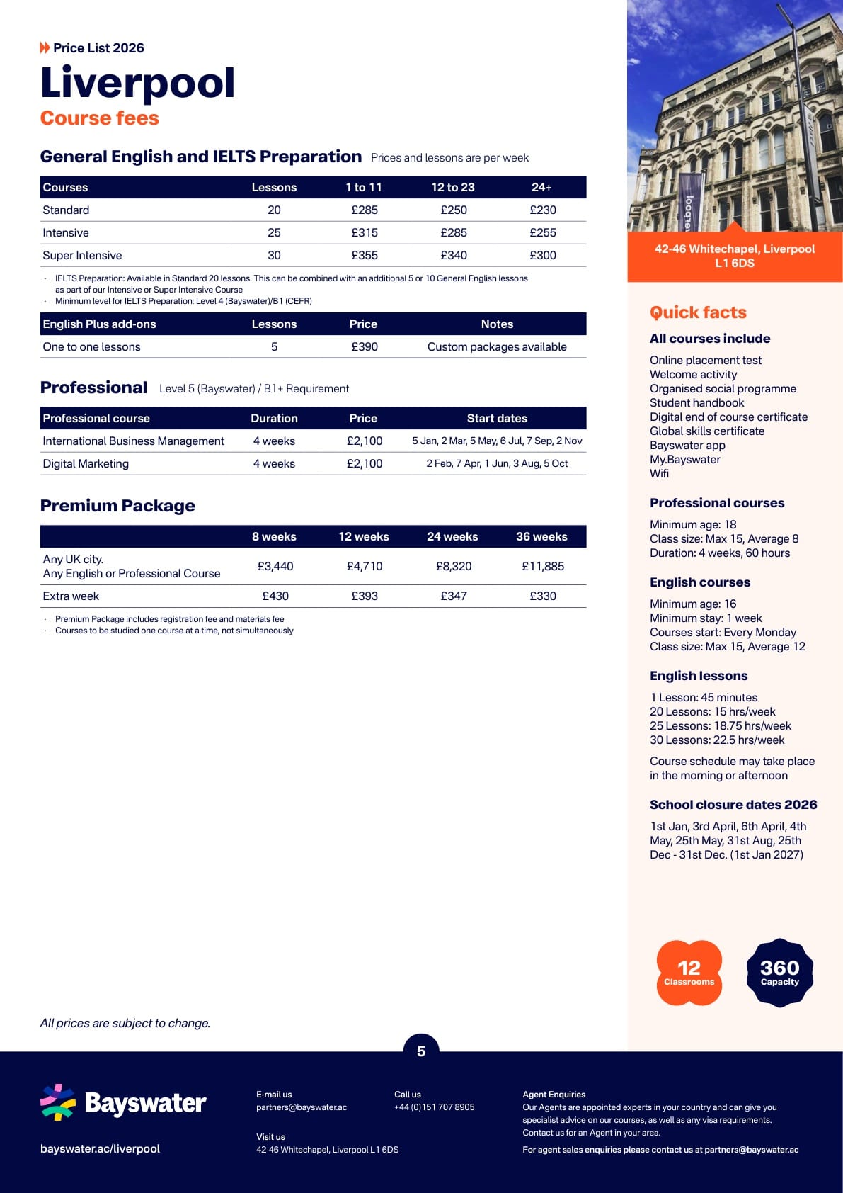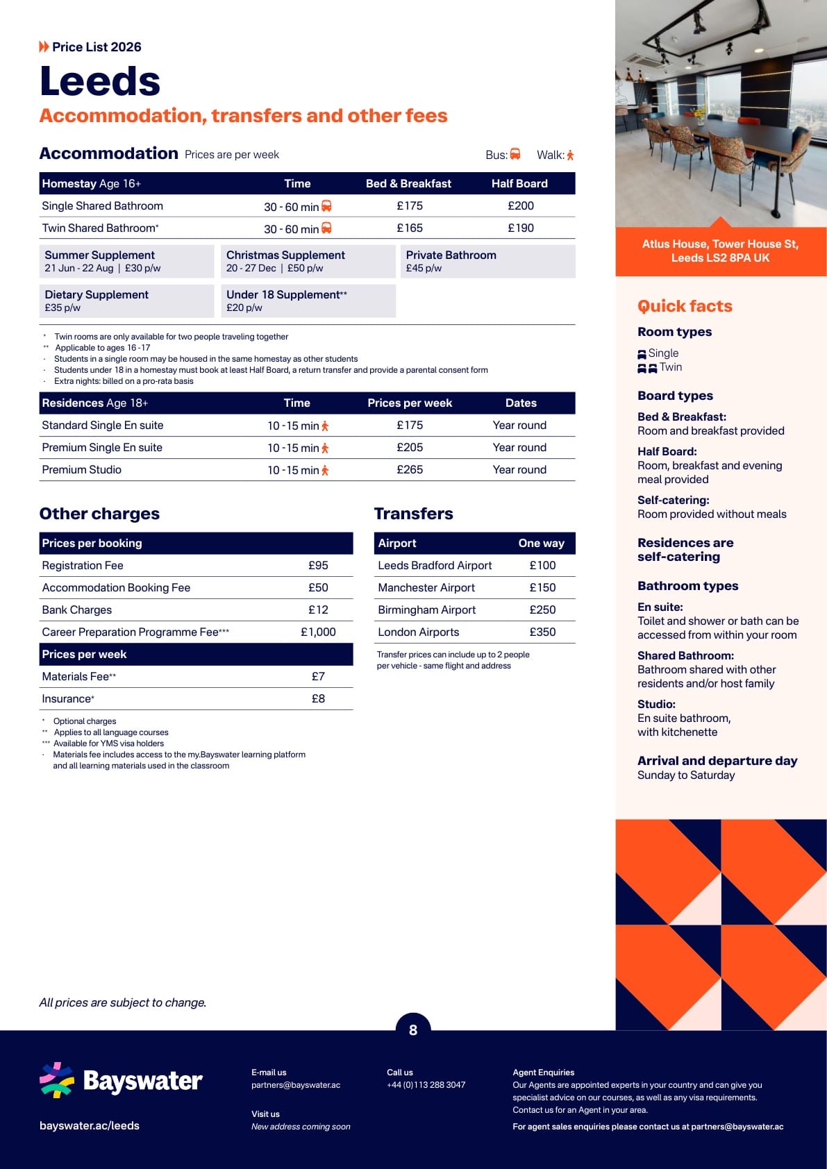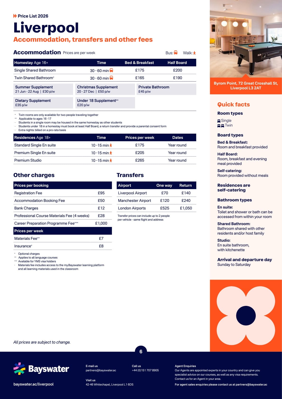- 기존 요금에서 주 £25 할인(예: Byrom Point: 현재 £175 에서 £150);