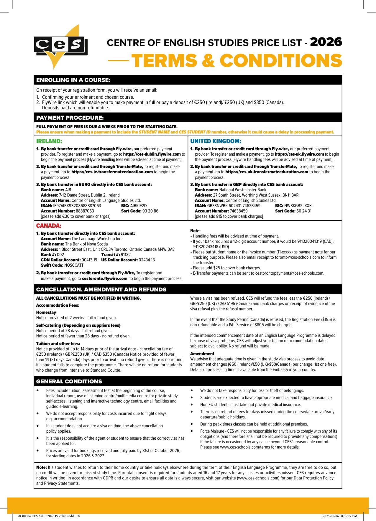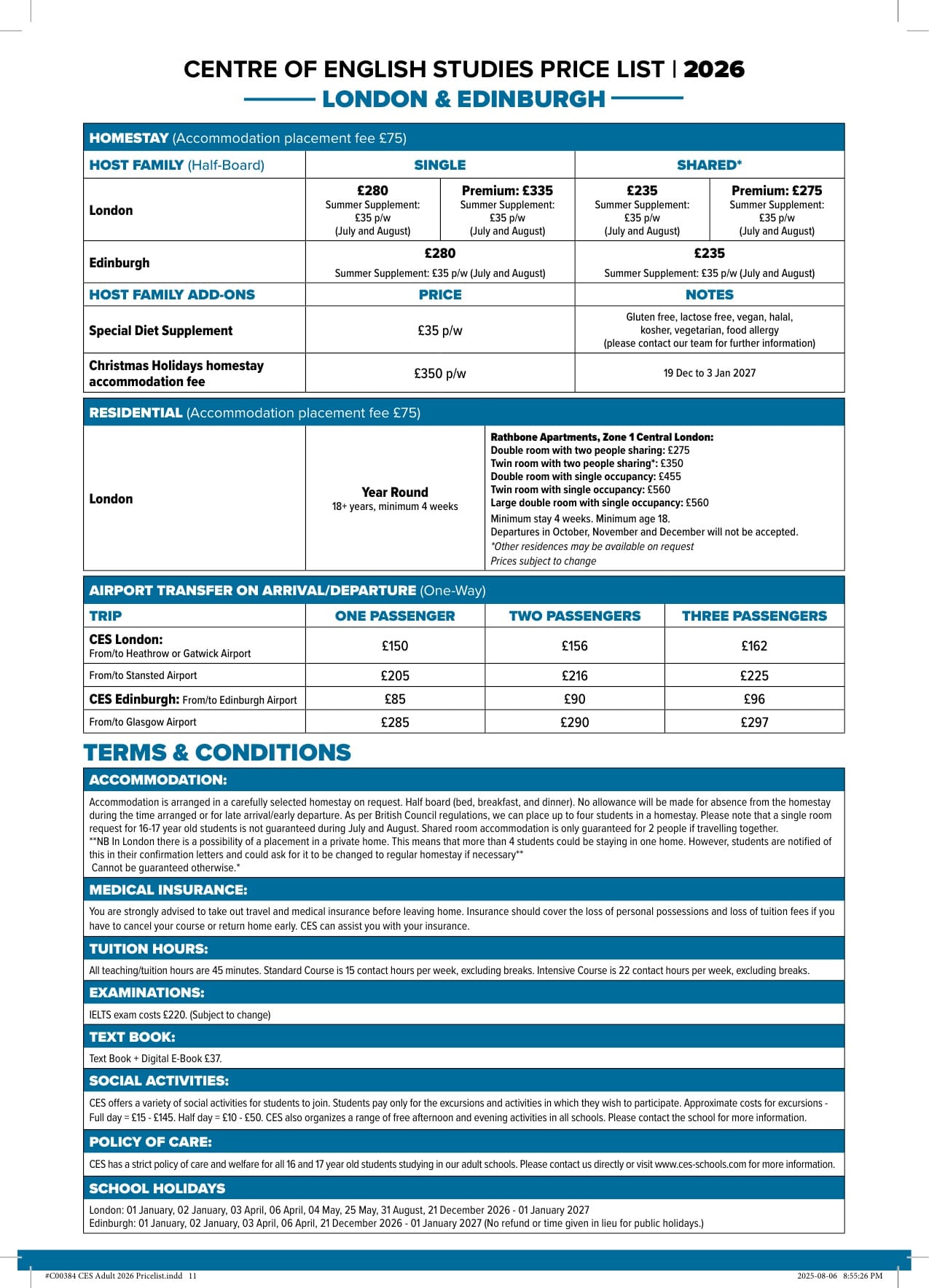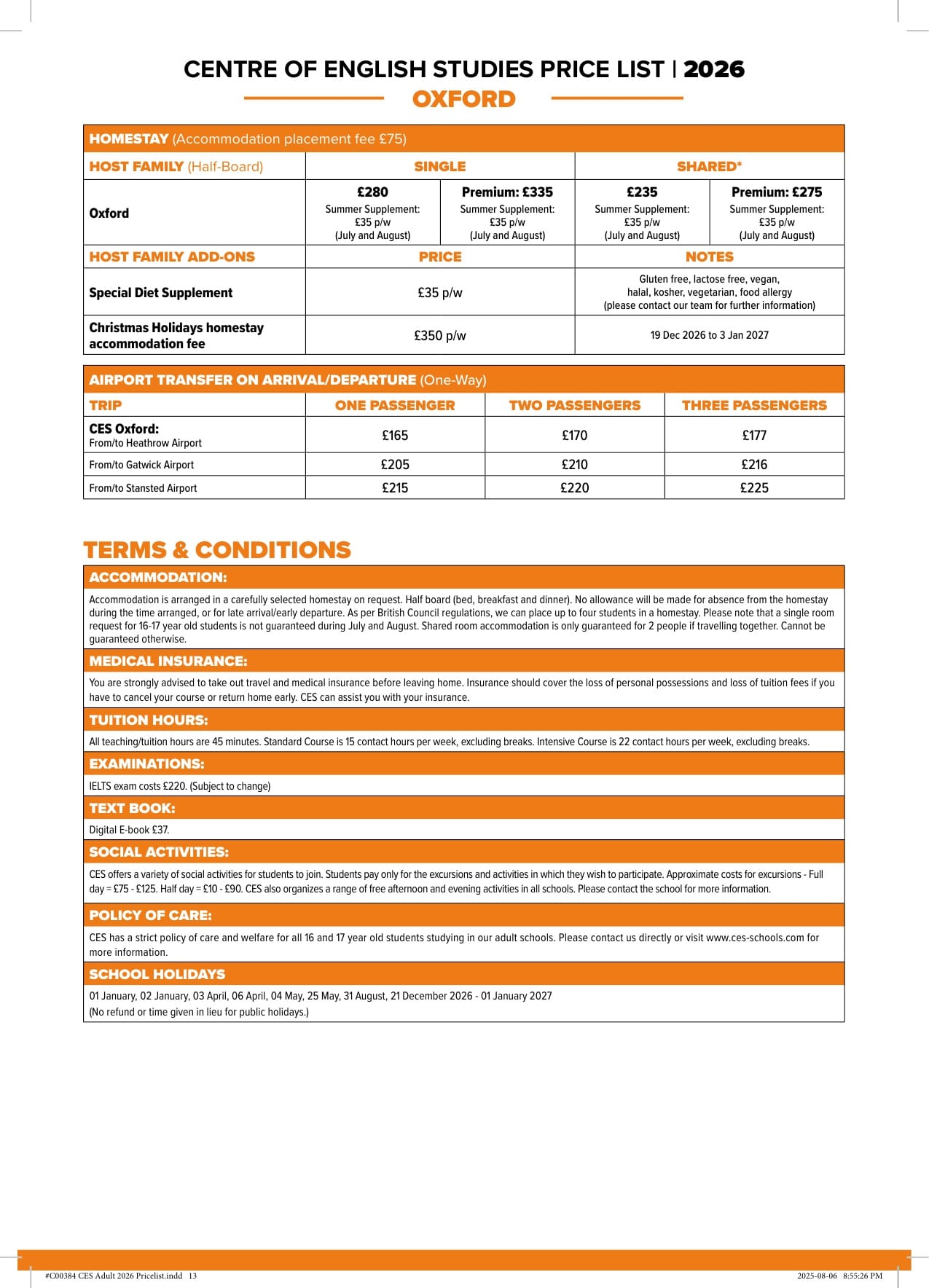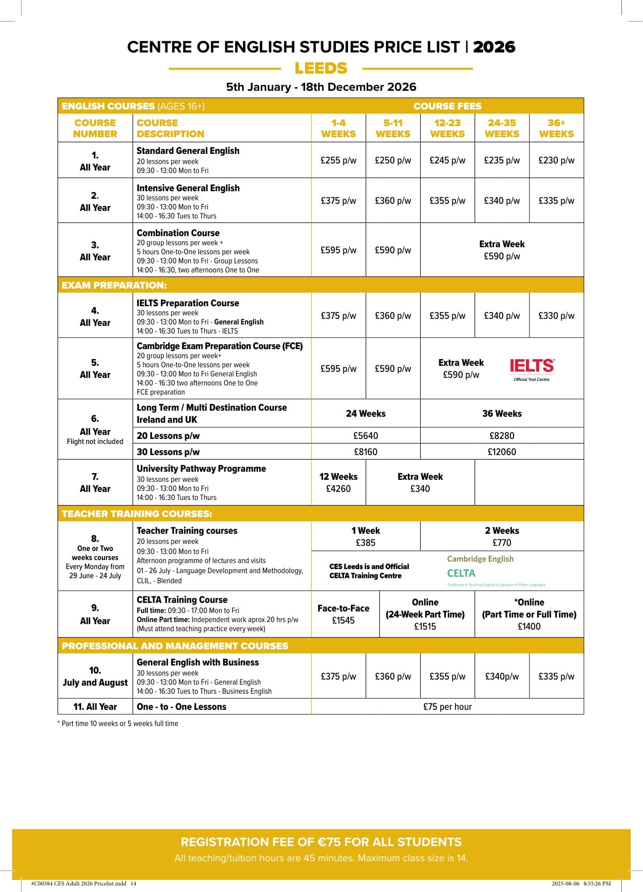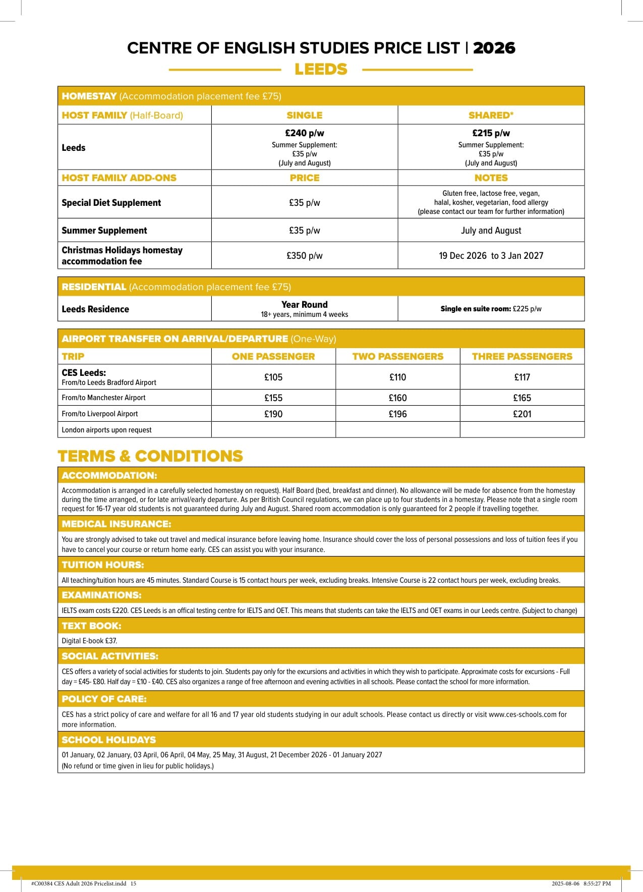 ✅ 예) 영국 8주 + 아일랜드 12주 등록 → 영국 1주 + 아일랜드 2주 무료 홈스테이 제공