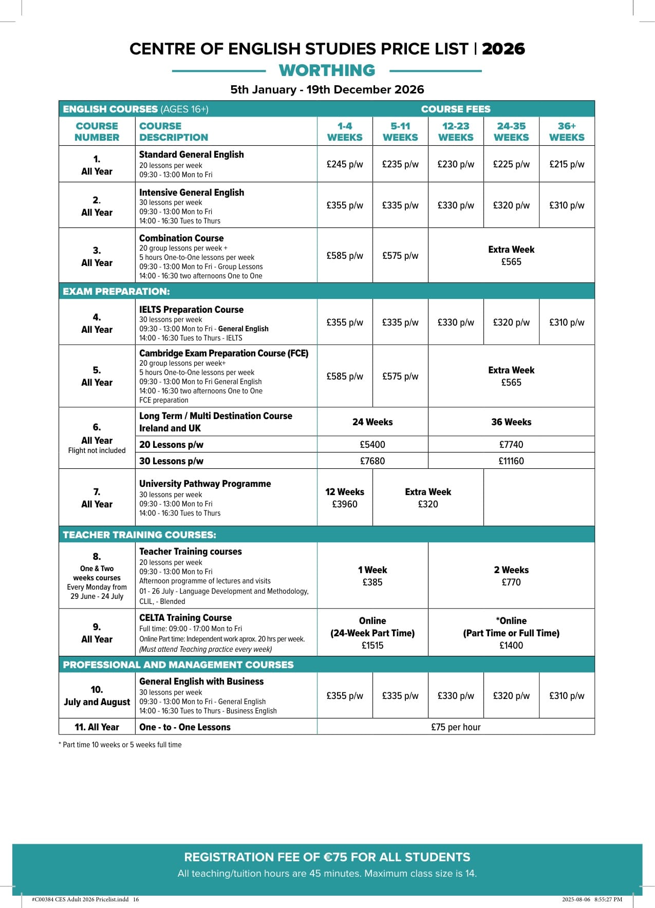 -모든 성인 과정(16세 이상) 등록 시, 학비 25% 할인