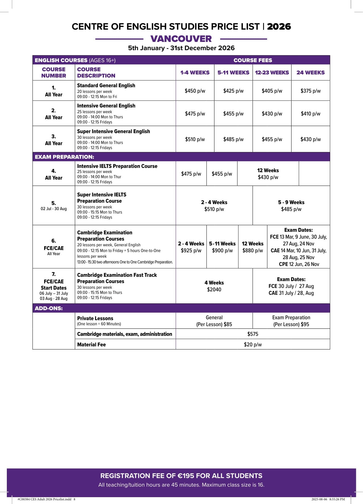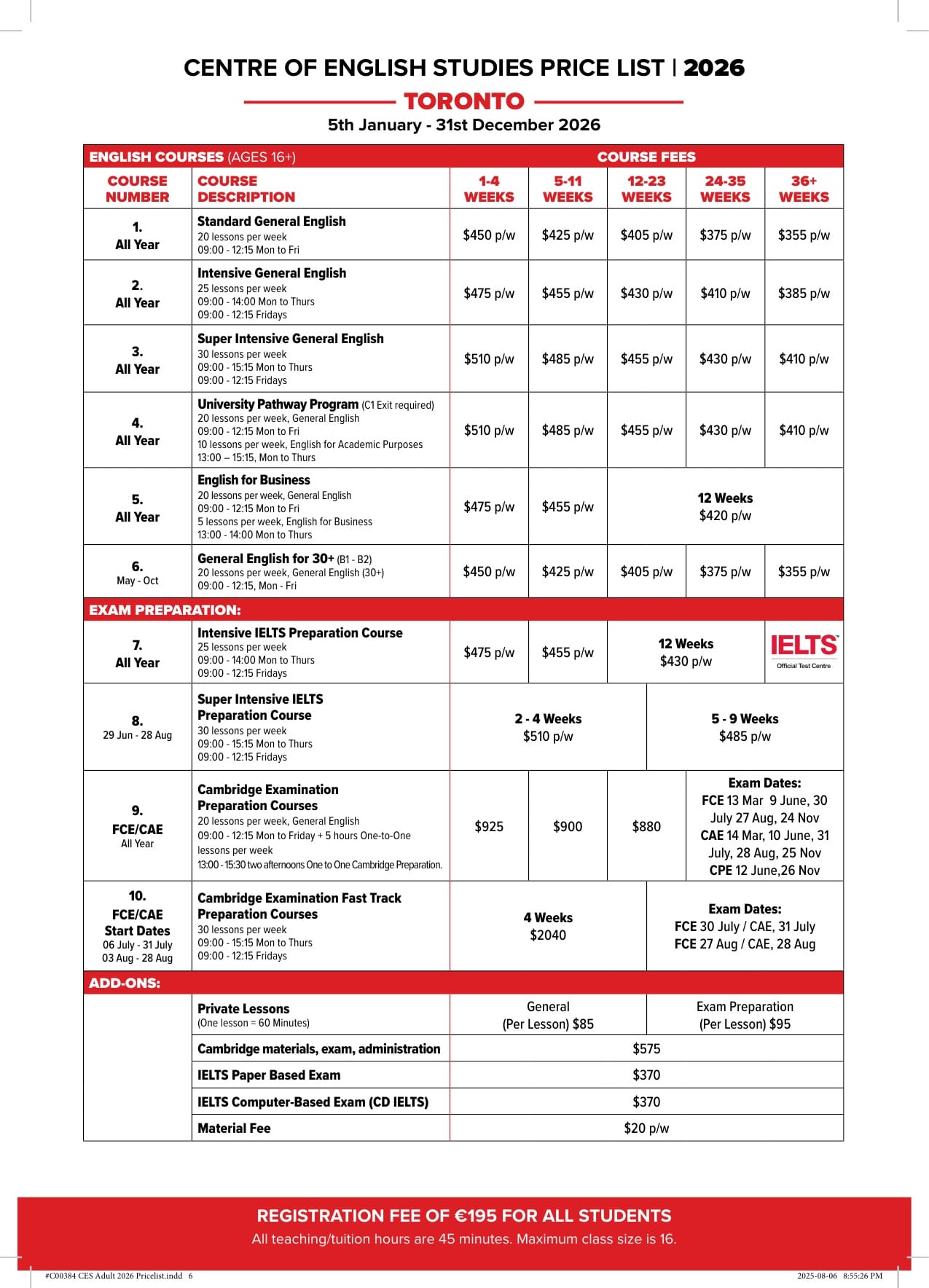 -36주 등록 시, 4주 무료 수업&4주 무료 교재비 제공 (CES 토론토만 해당)