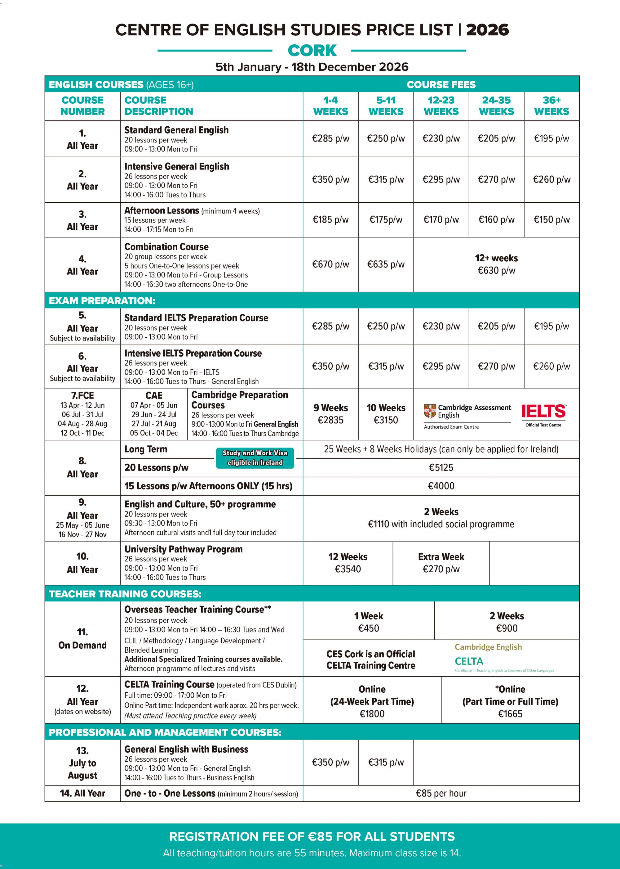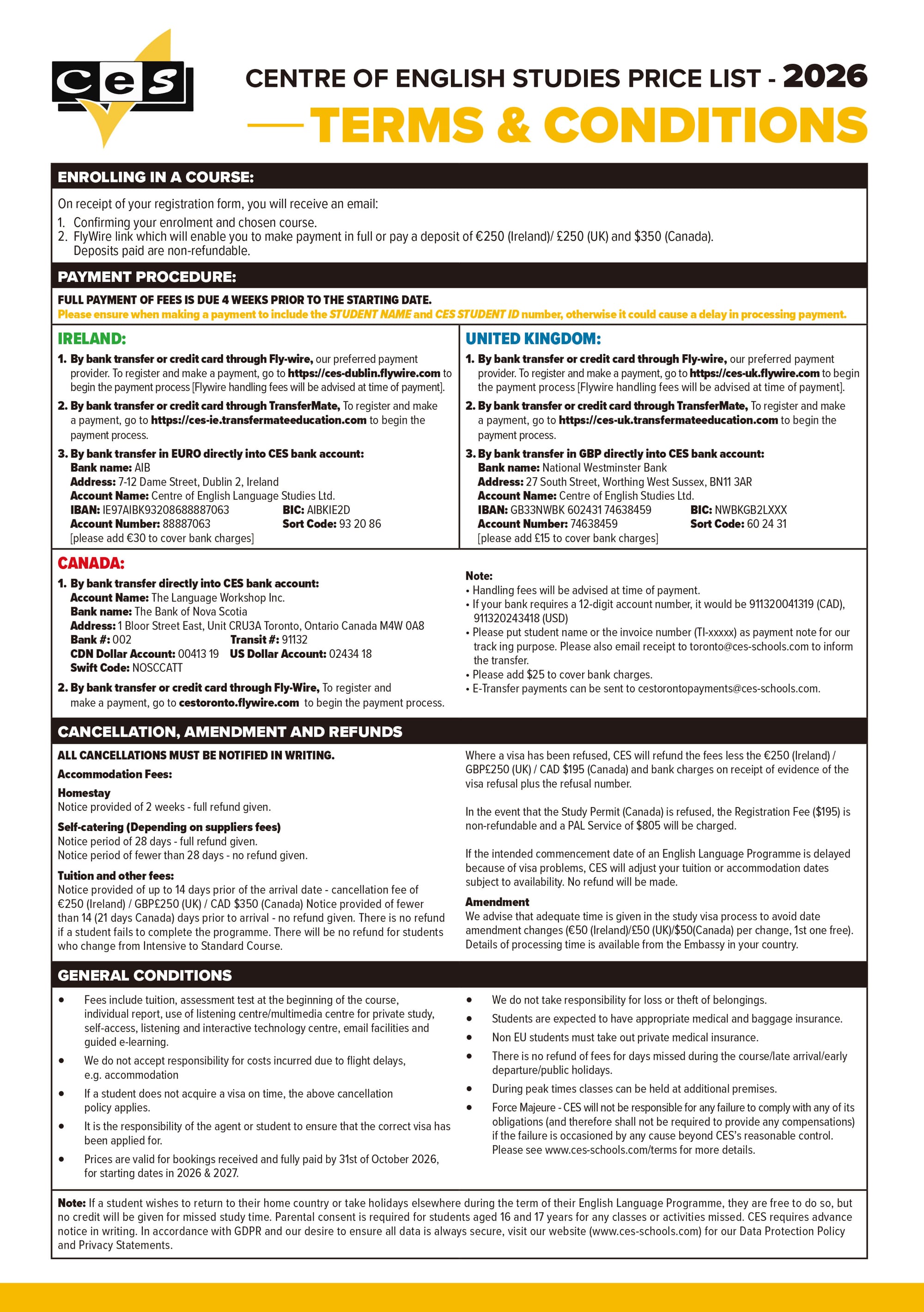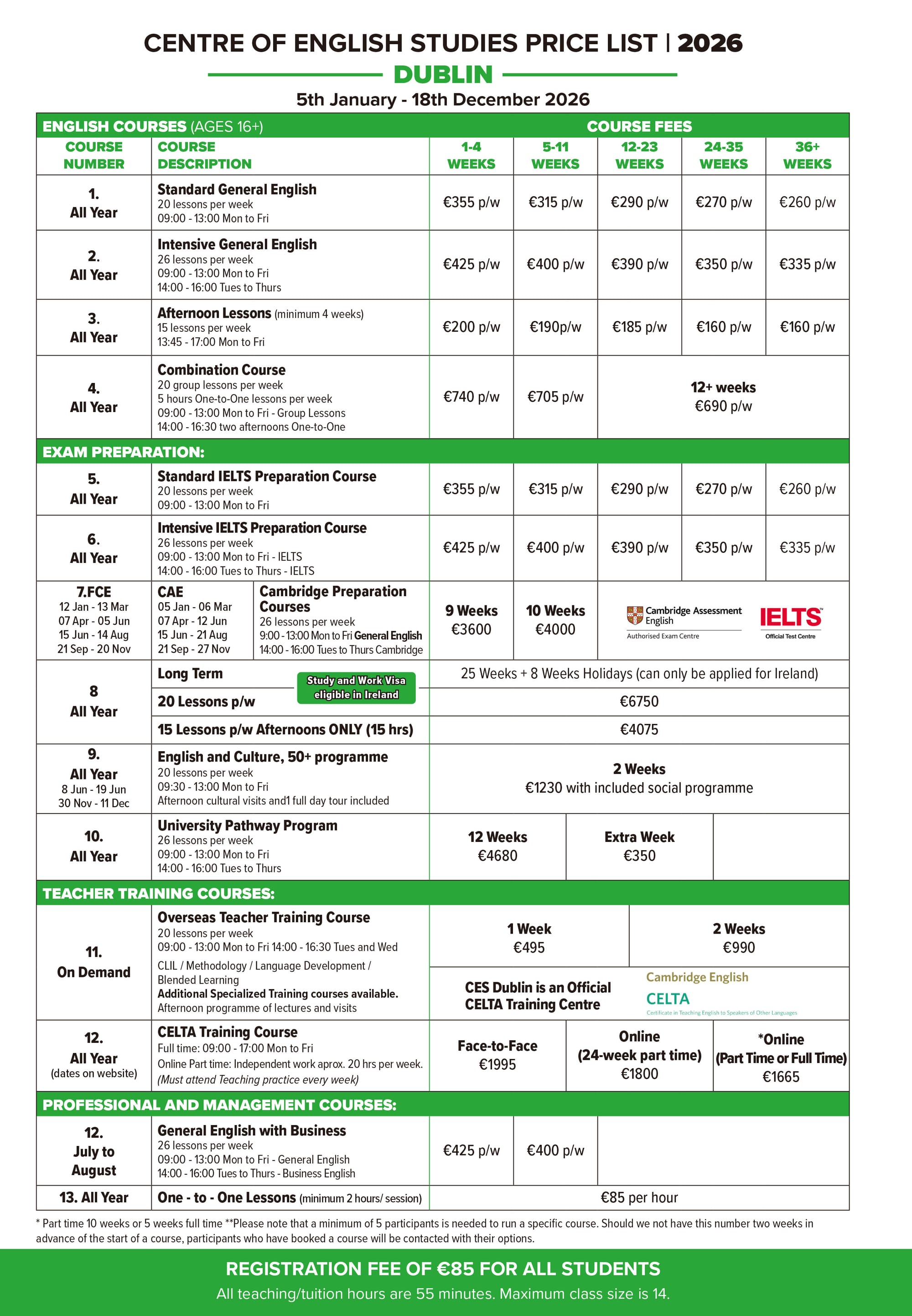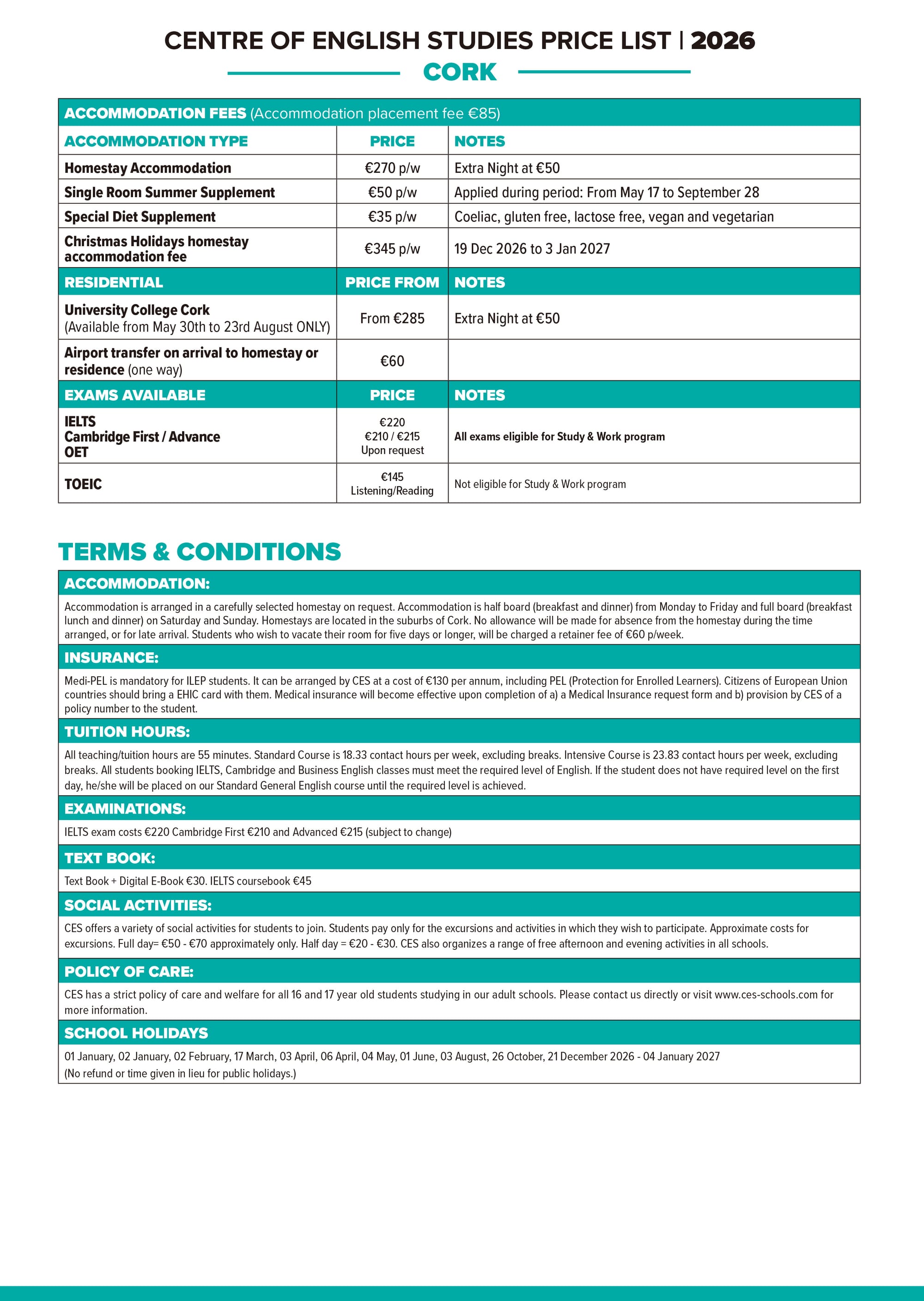어학연수 CES 학비표 ver. 2026.01.06 유학피플 문의 02-554-8666 24 3월 2025 — 2 min read 아일랜드 - 더블린 (Dublin)아일랜드 - 코크 (Cork)캐나다 - 토론토 (Toronto)캐나다 - 밴쿠버 (Vanocuver)영국 - 런던& 에딘버러 (London & Edinburgh)영국 - 옥스포드 (Oxford)영국 - 리즈 (Leeds)영국 - 워딩 (Worthing)Terms & Conditions