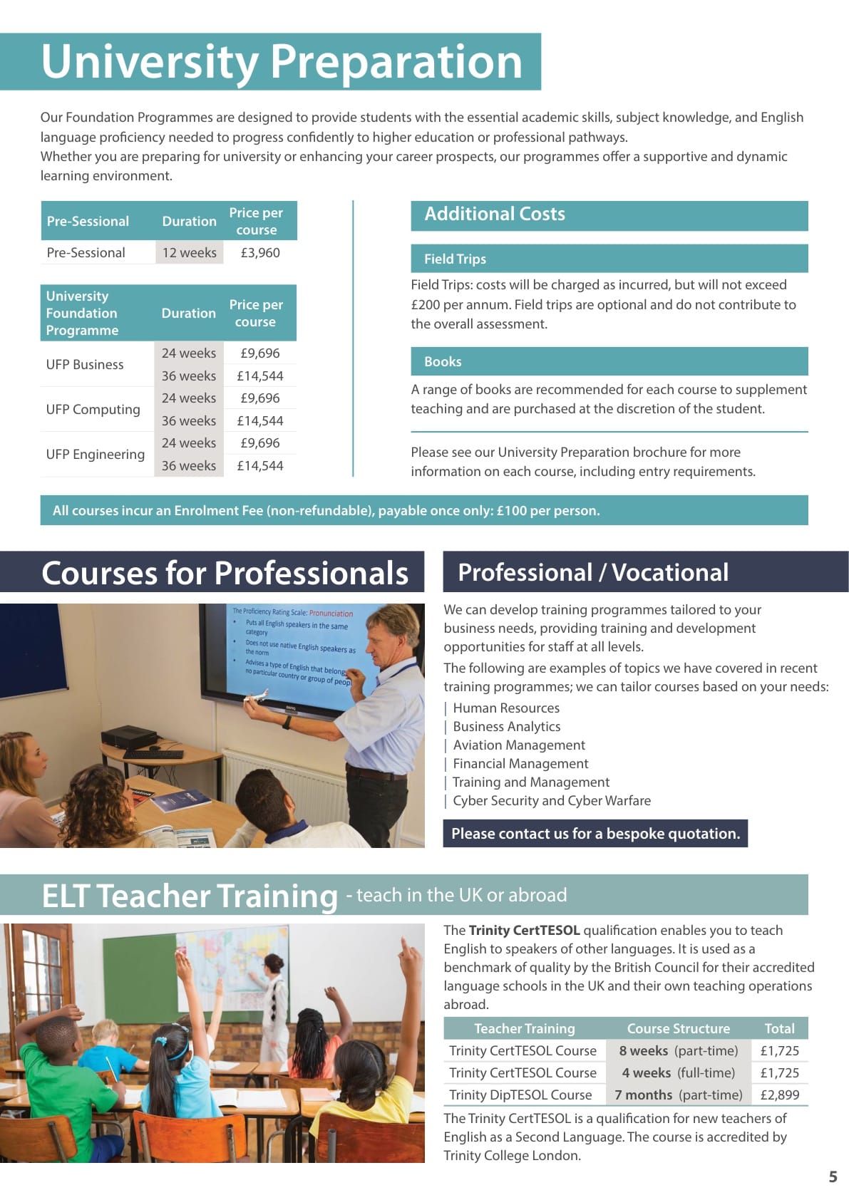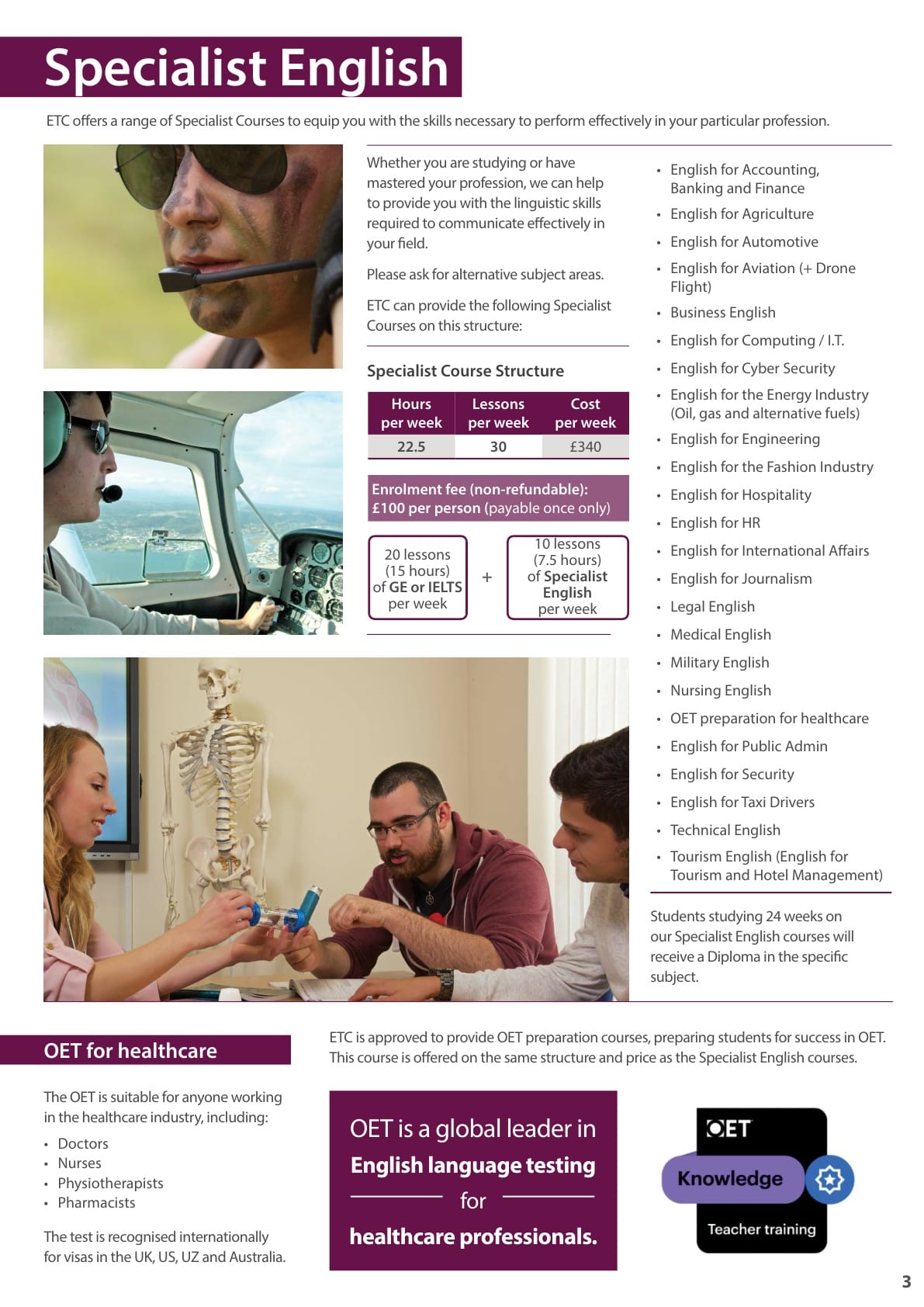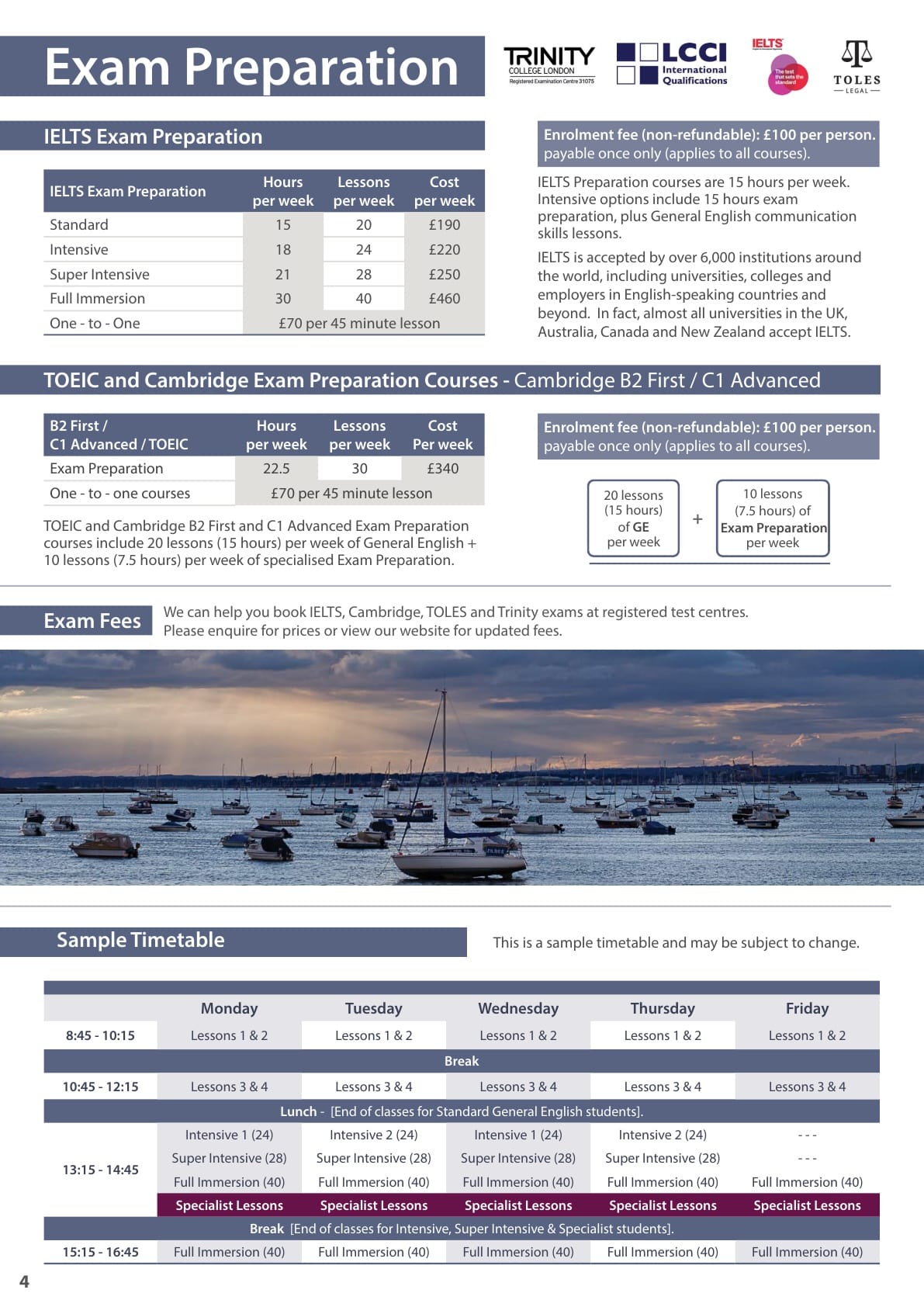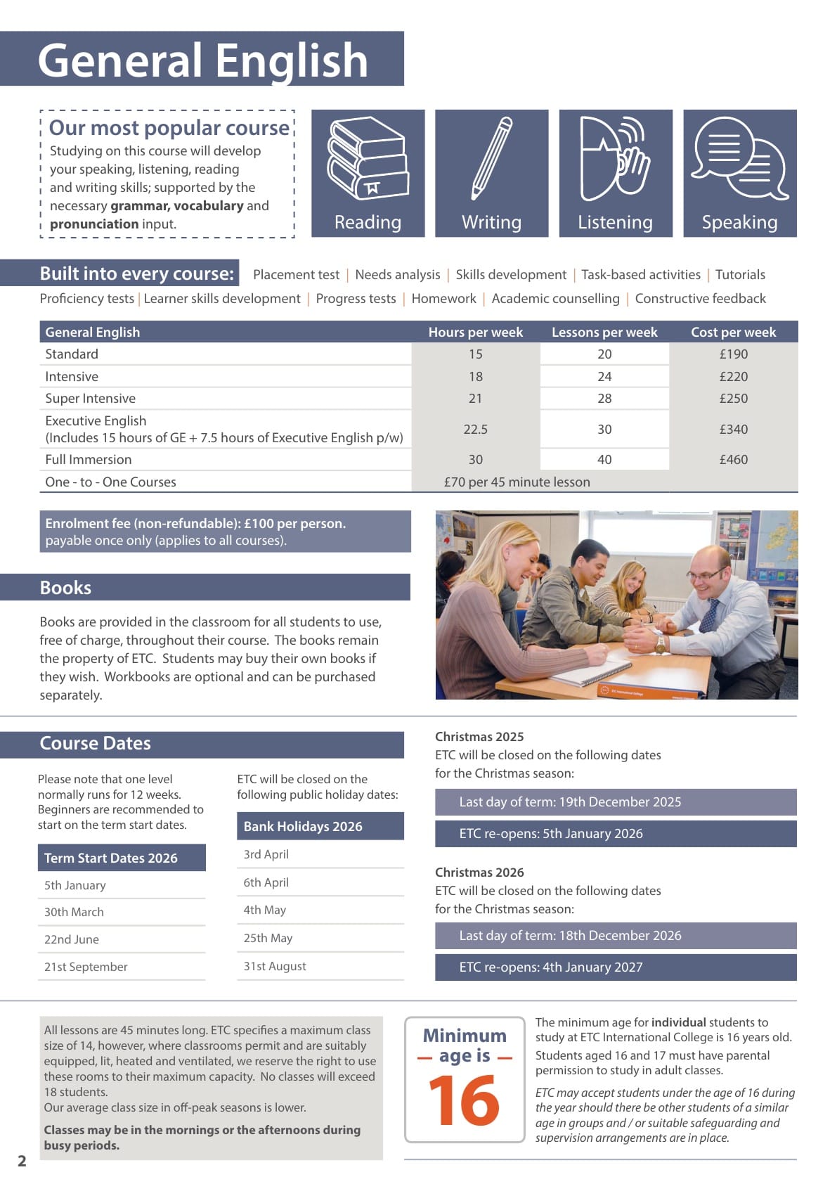 ETC 어학원 학비표
