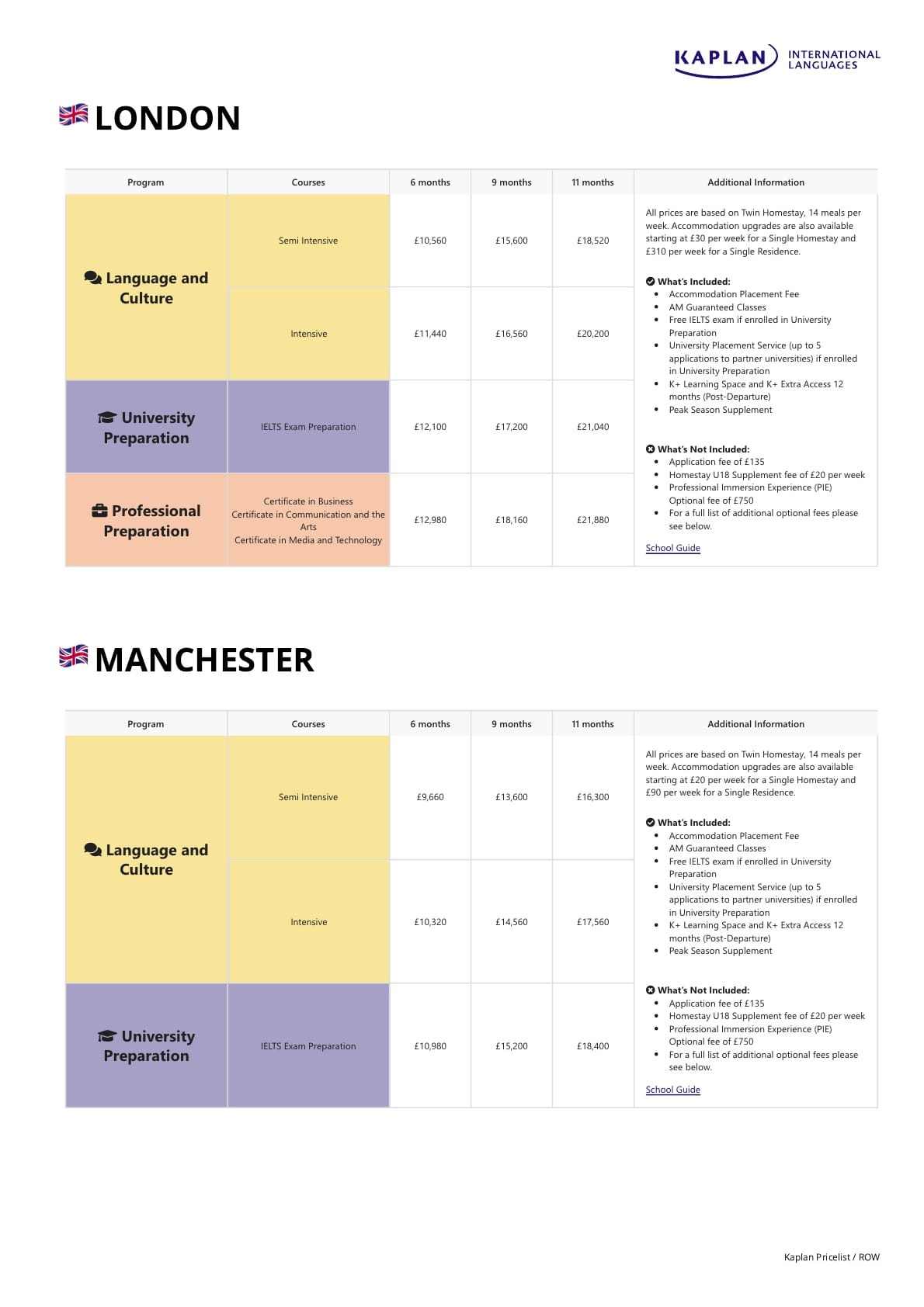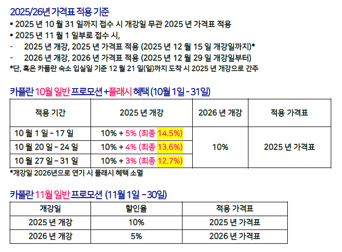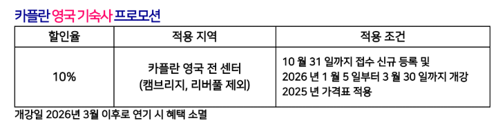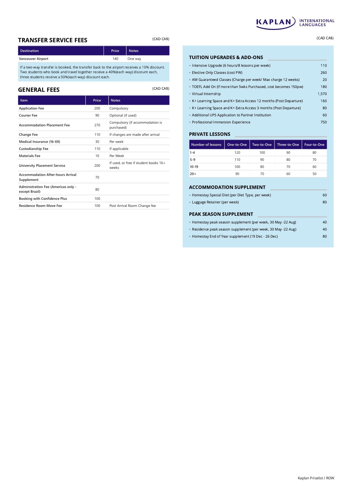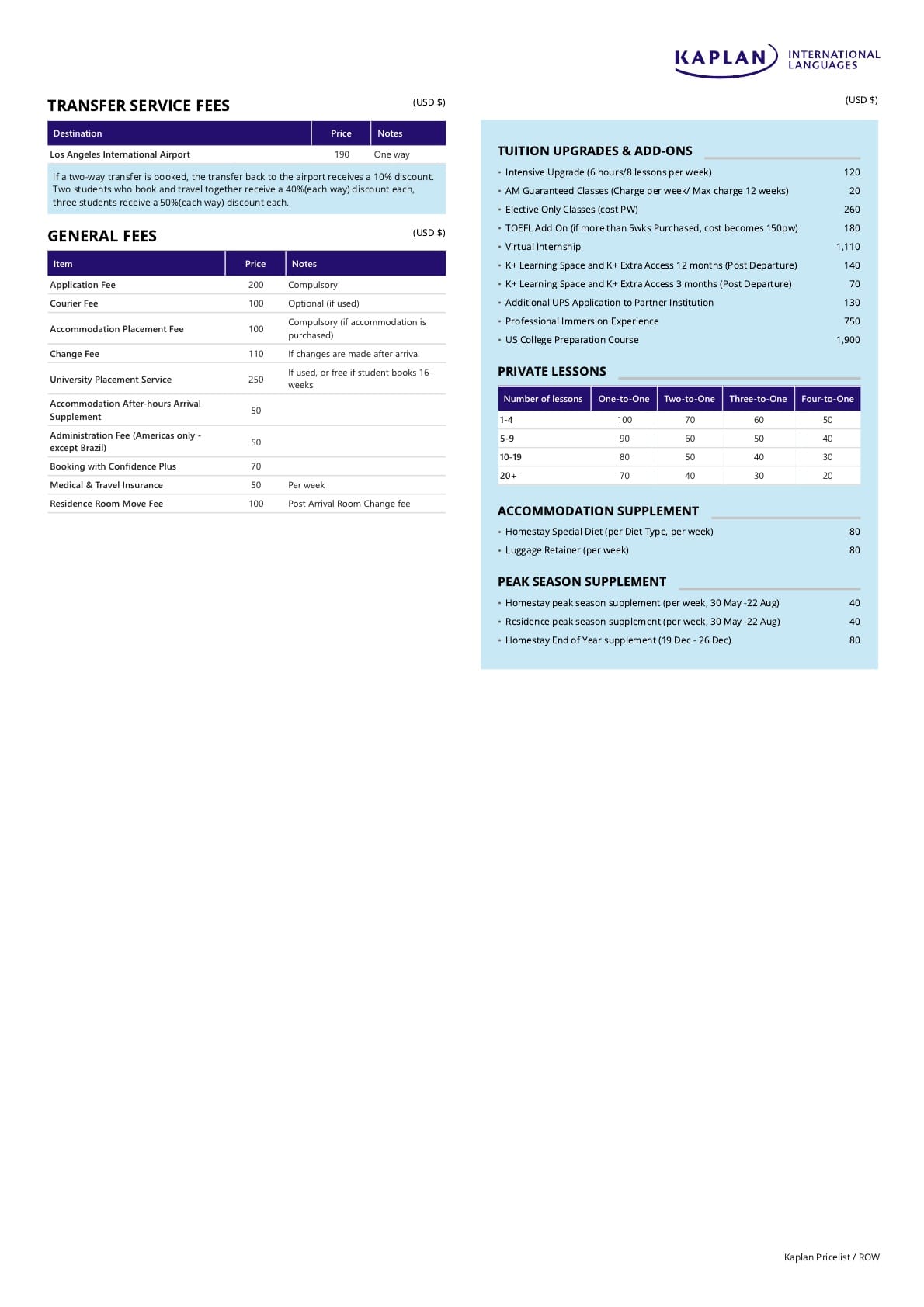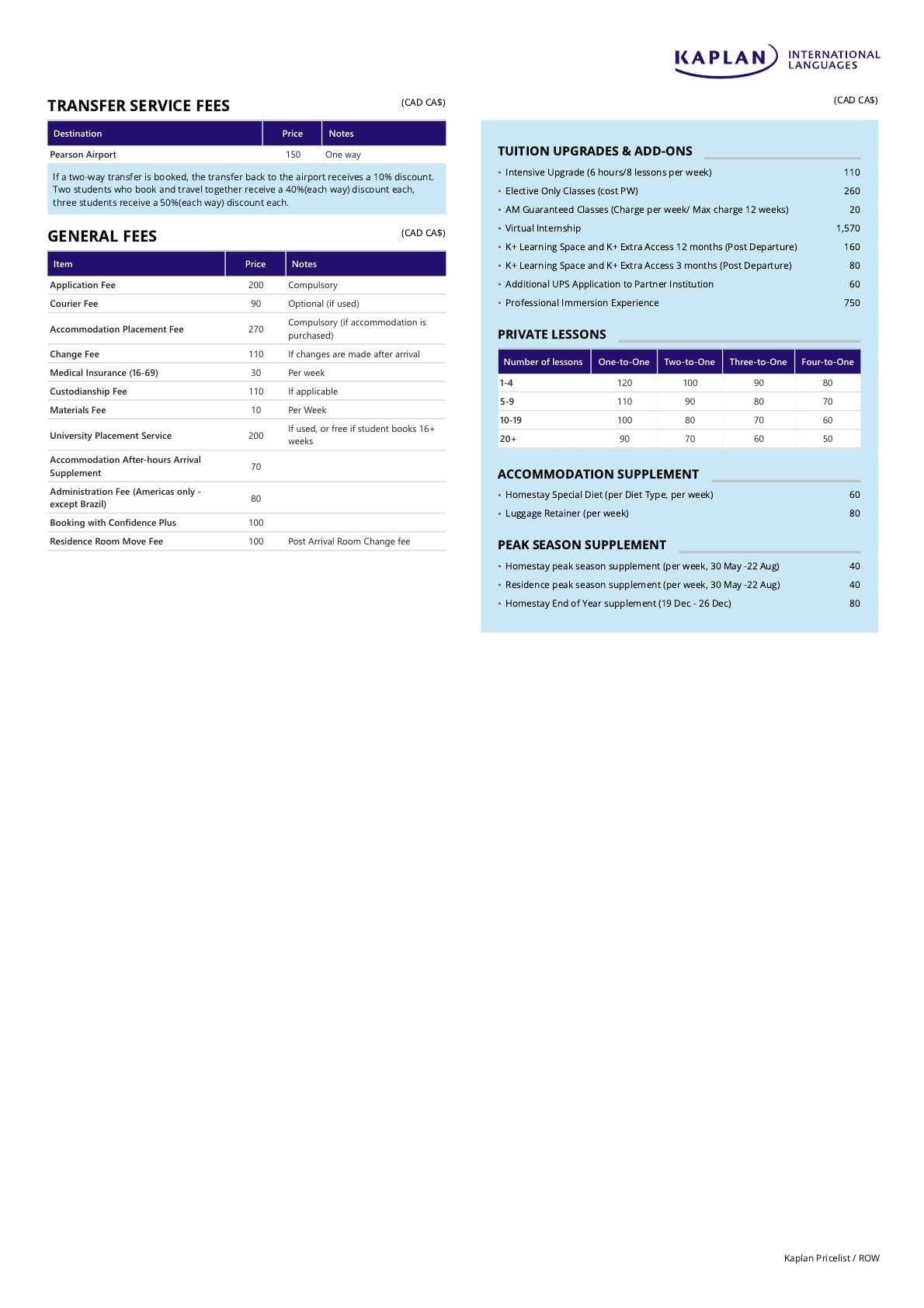 어학연수 카플란(Kaplan)어학원 학비표 ver. 2025.10.22 유학피플 문의 02-554-8666 28 8월 2024 • 5 min read 2026년도 학비-미국--캐나다--영국--아일랜드--Academic Year Abroad-2025년도 학비 (~10월 31일까지 사용)2025년 10월~11월 카플란 프로모션