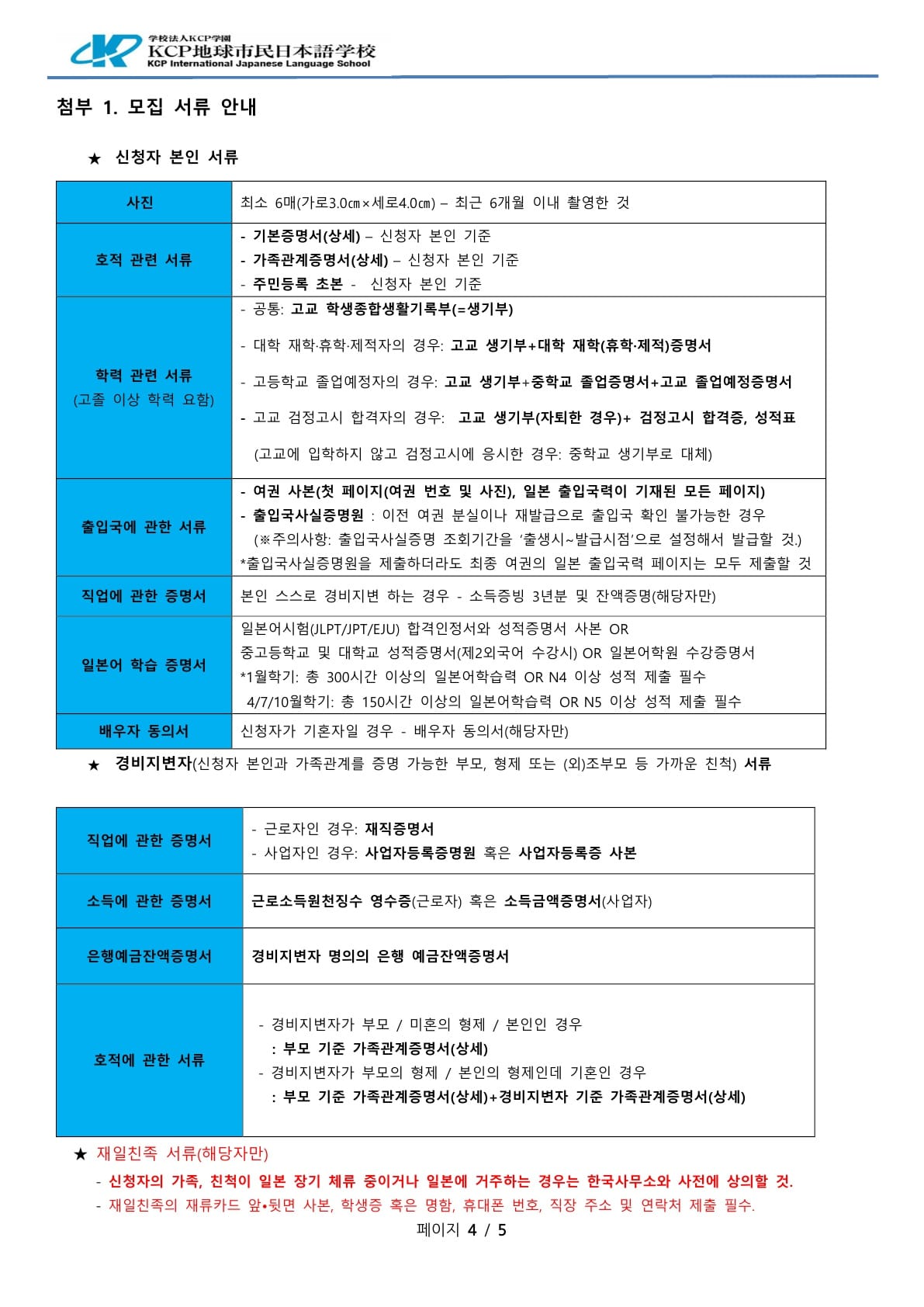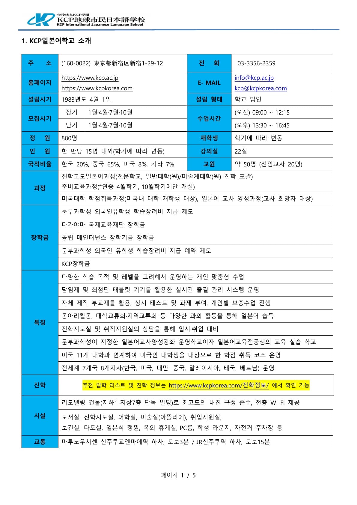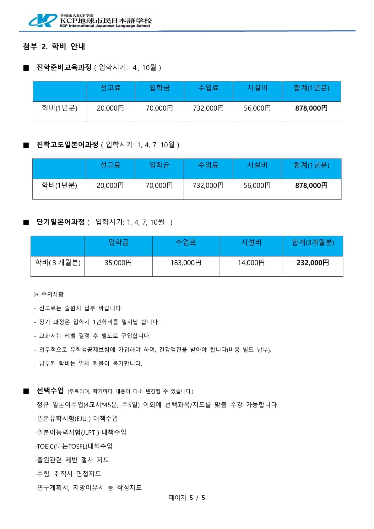 KCP지구 시민 일본어학교 팜플렛
