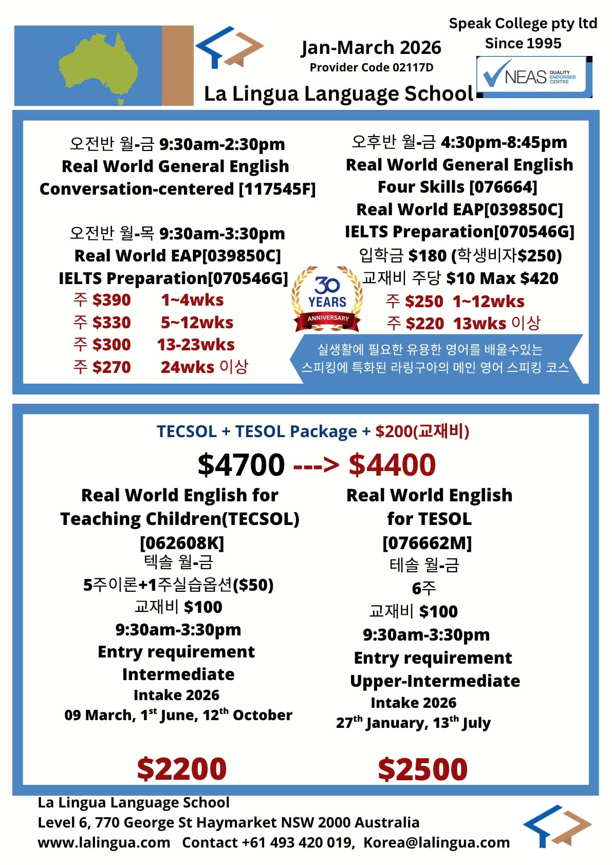 La Lingua Enrolment fee Agent Bonus, ABM Enrolment Fee, 학생 $250 Waived
