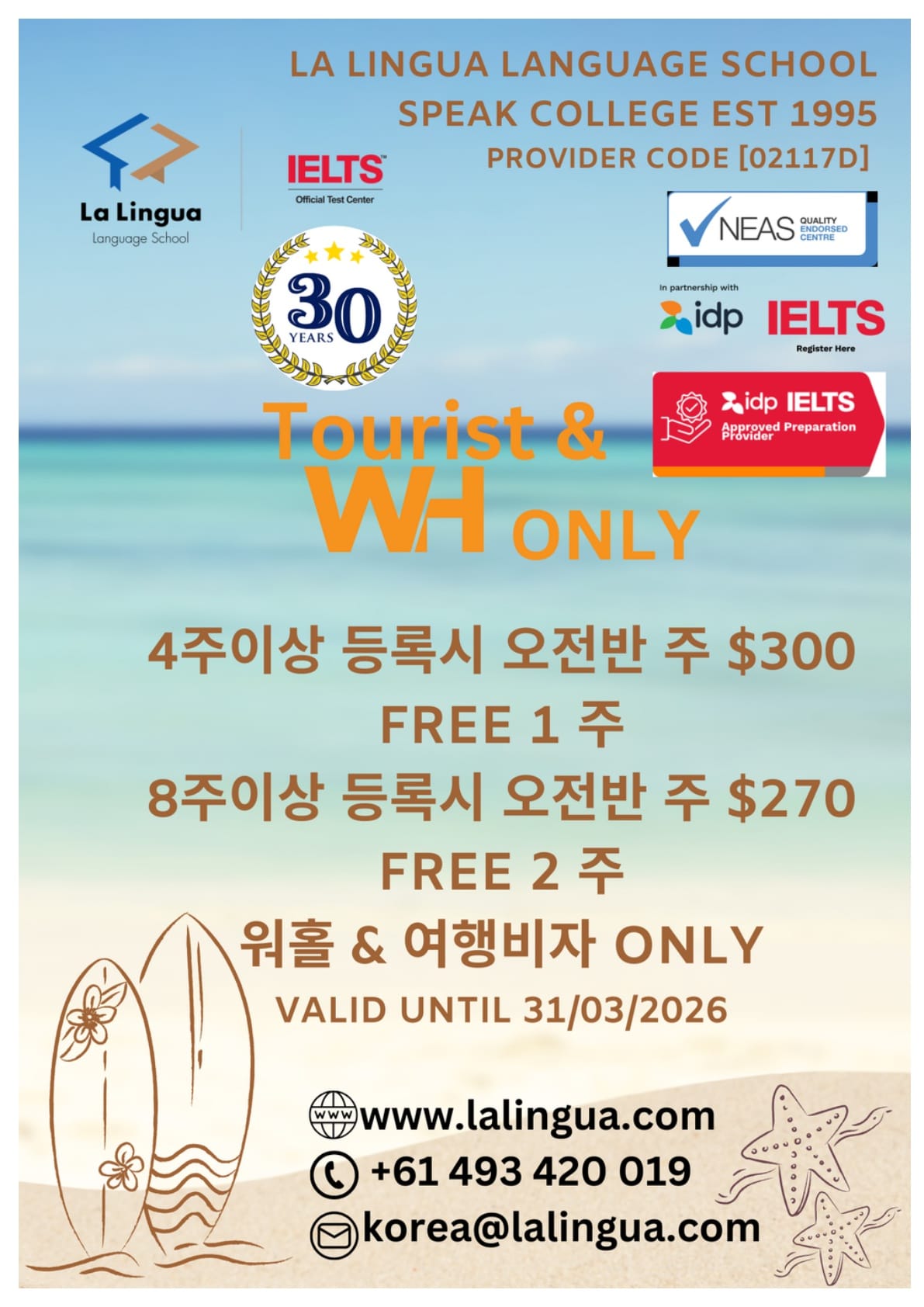 Both La Lingua & QCA Application Fee Waived, Conditional CoE Deposit $500, QCA Birthday Promotion 적용 (2026년 패키지등록자, QCA 시작일 2027년 or 2028년 상관없음)