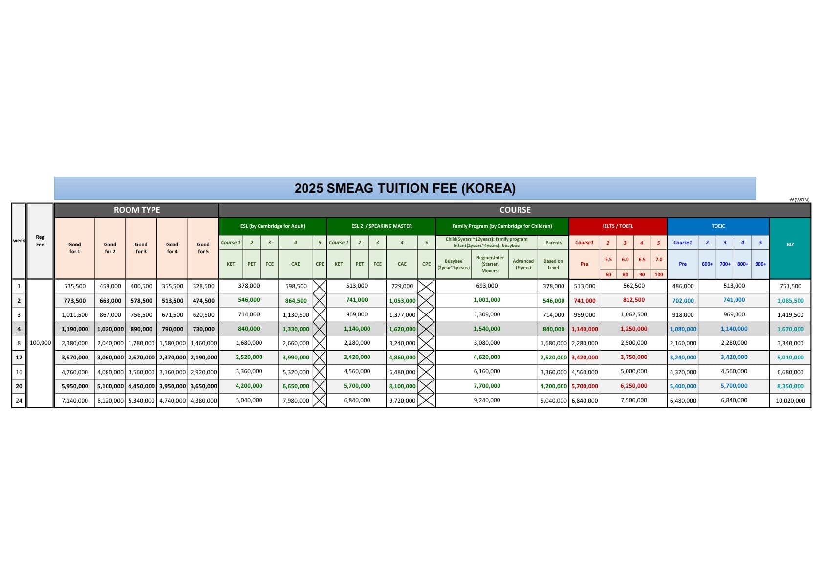 SMEAG 학비표 입니다.