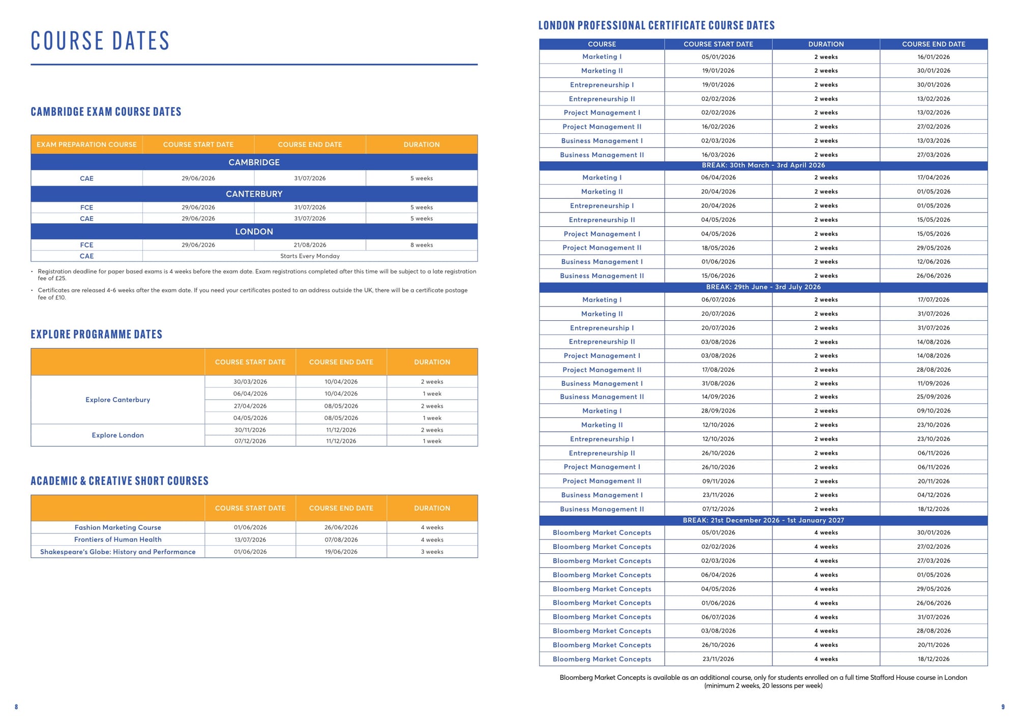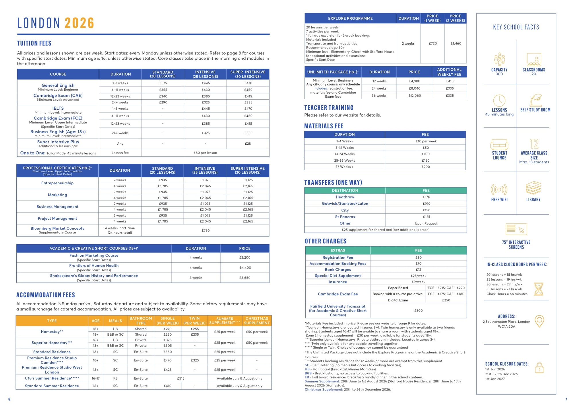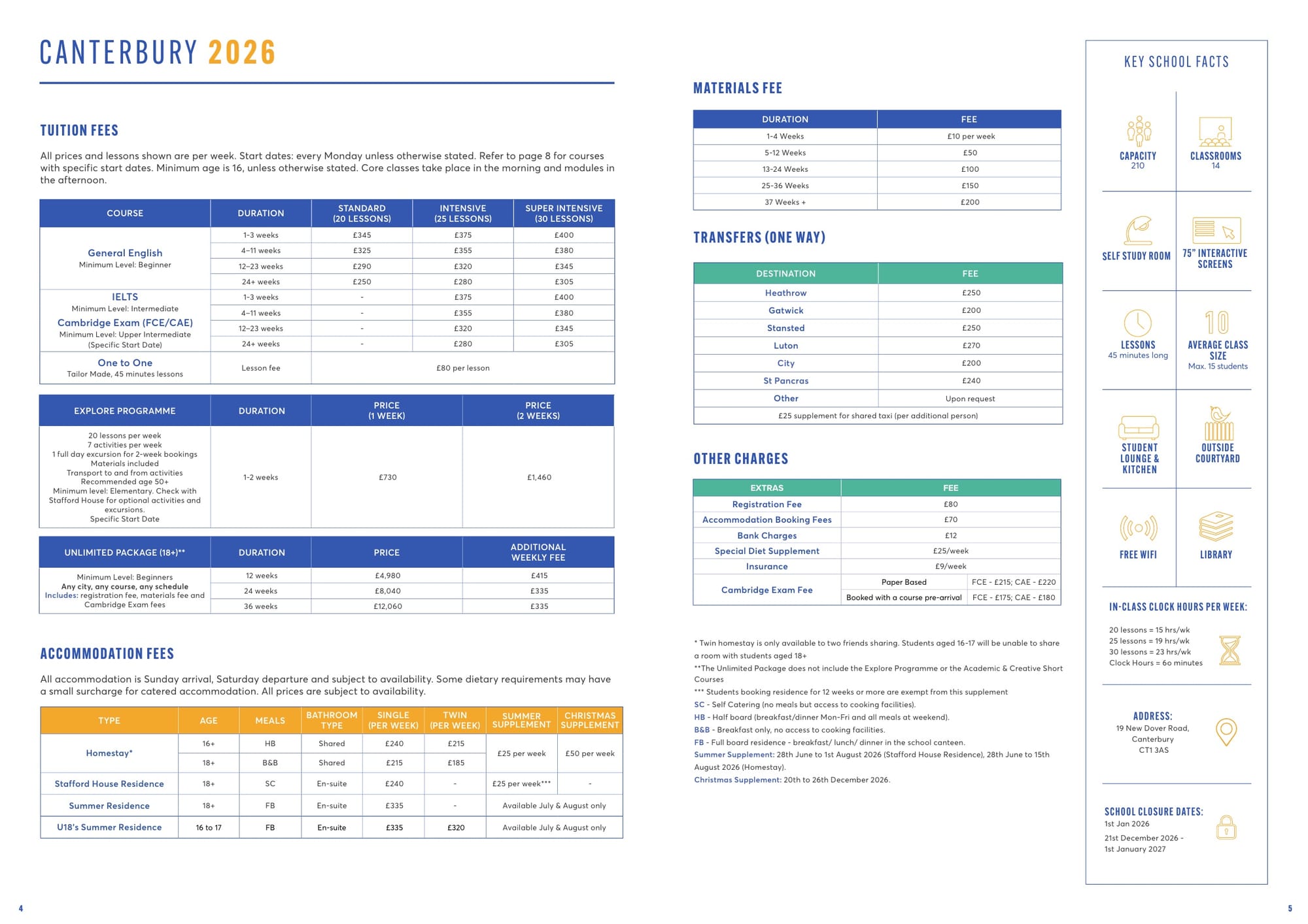 Stafford House 학비표