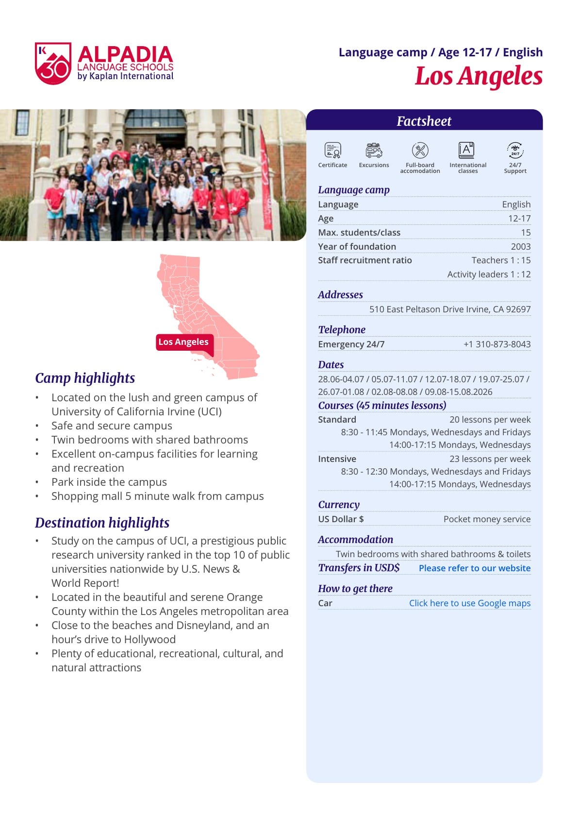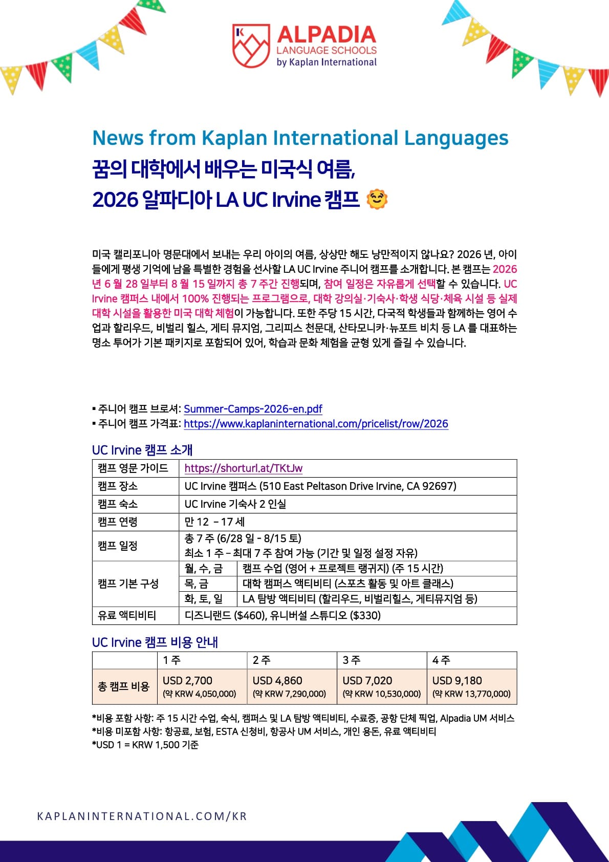 2026년 여름 UC 얼바인 캠프 브러셔입니다.