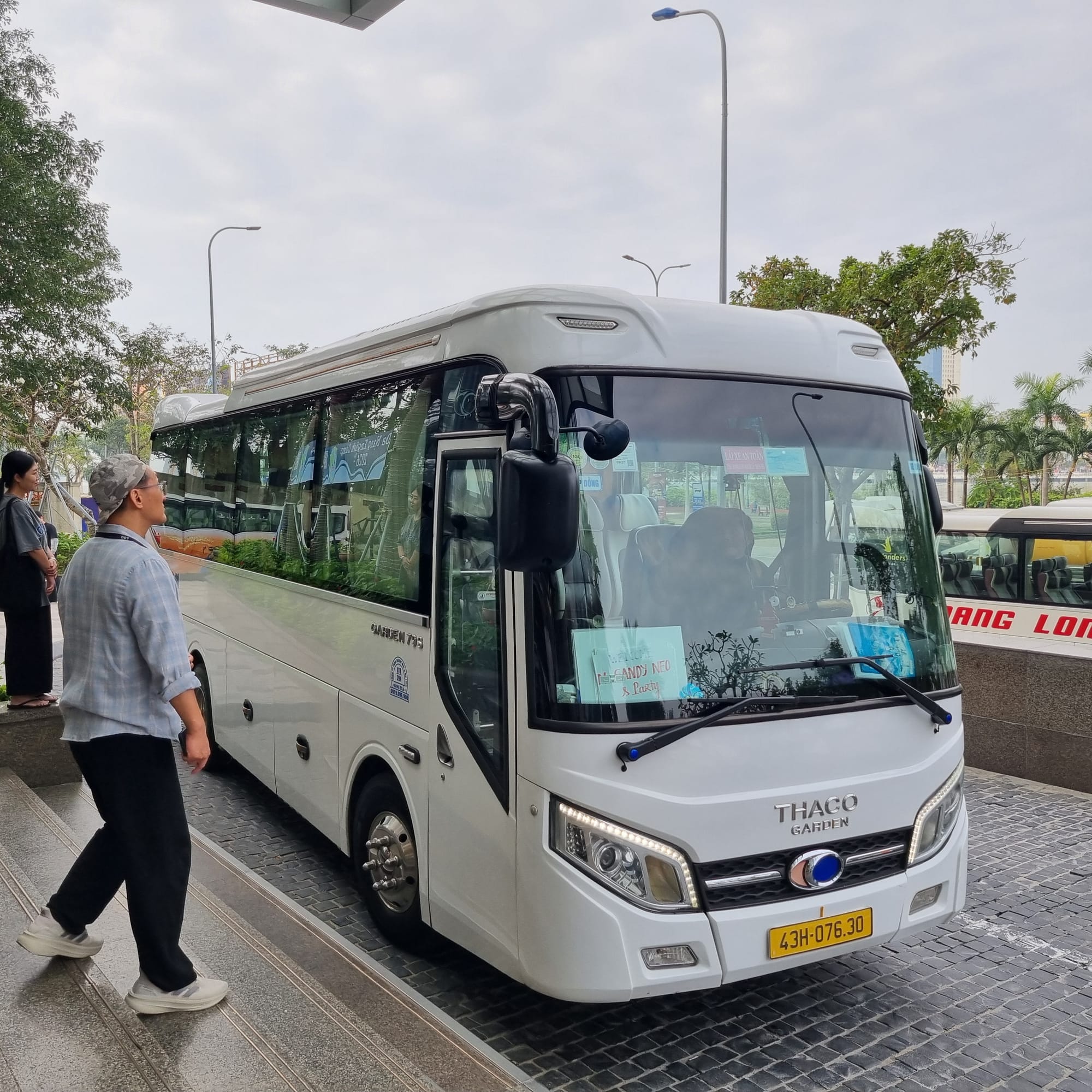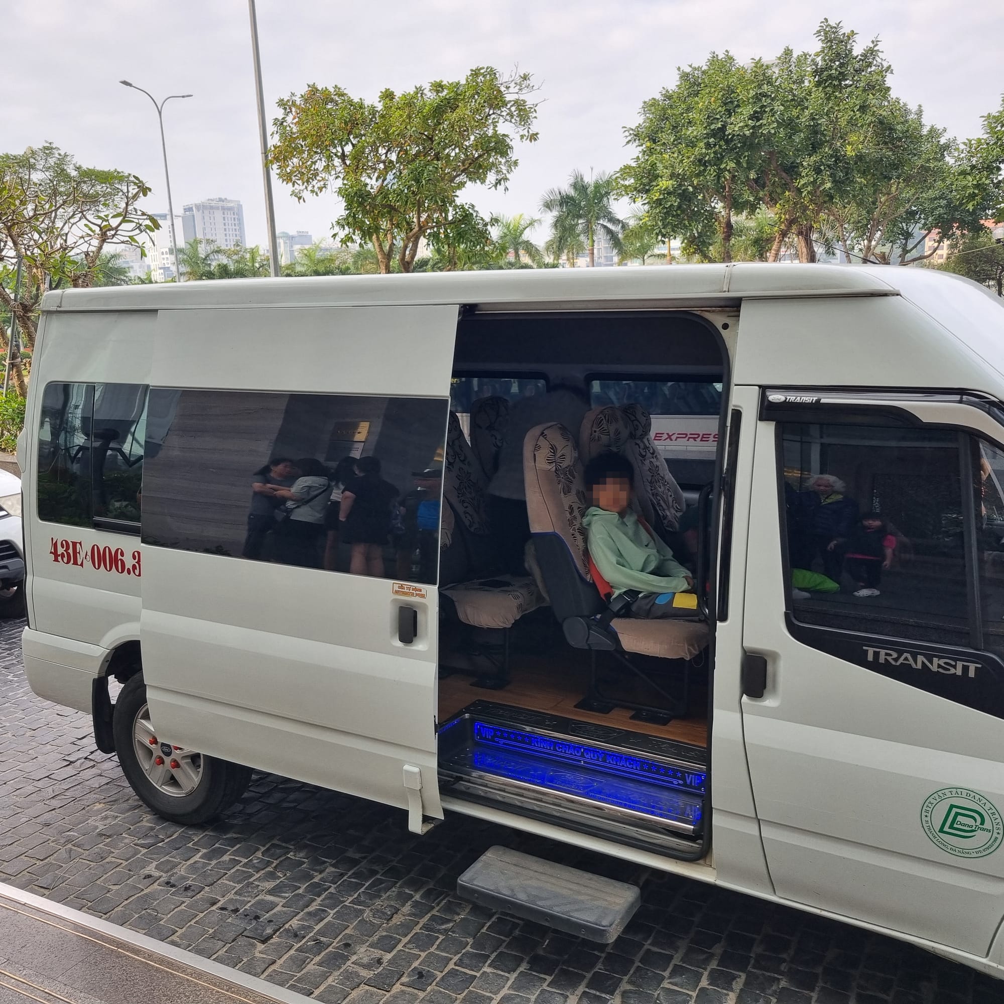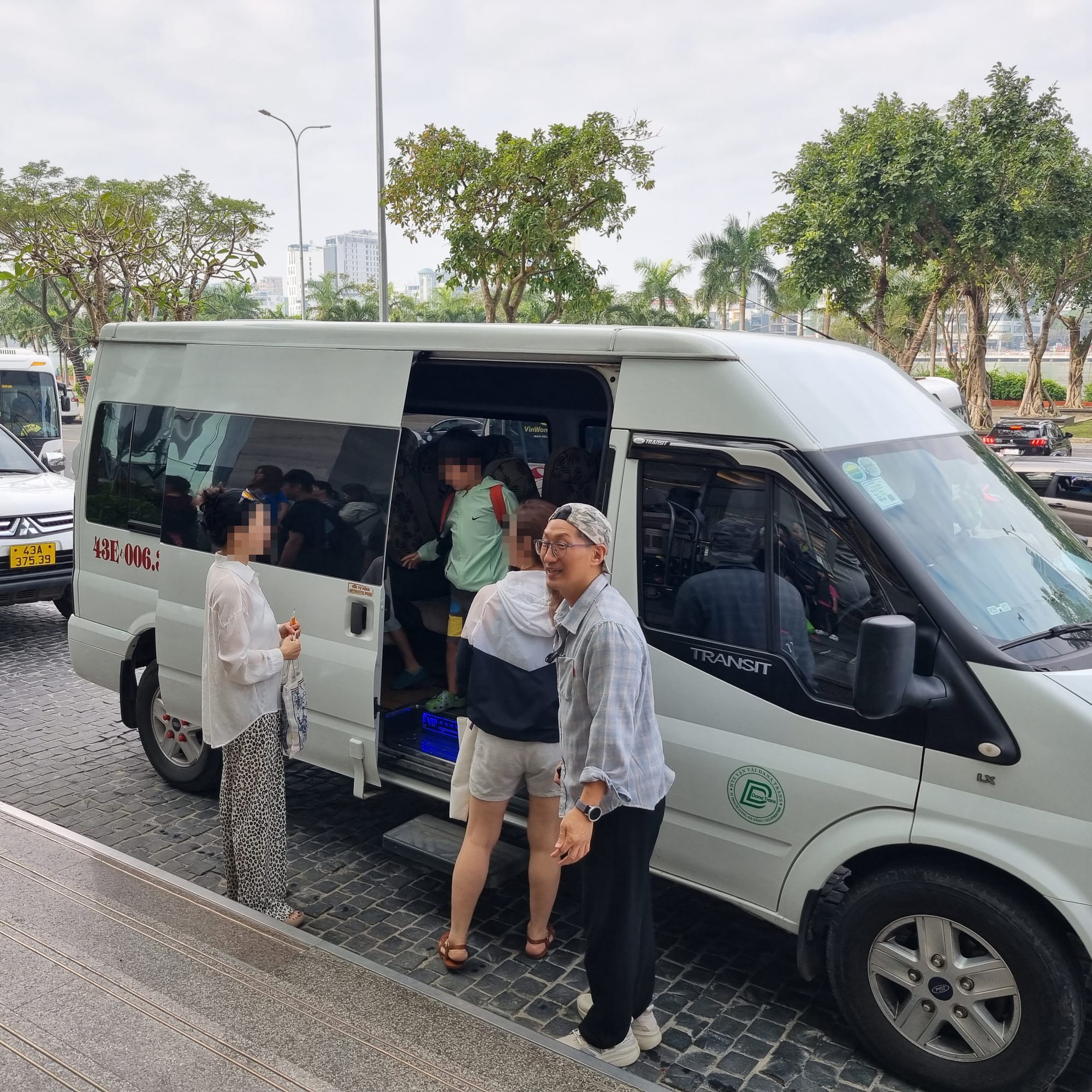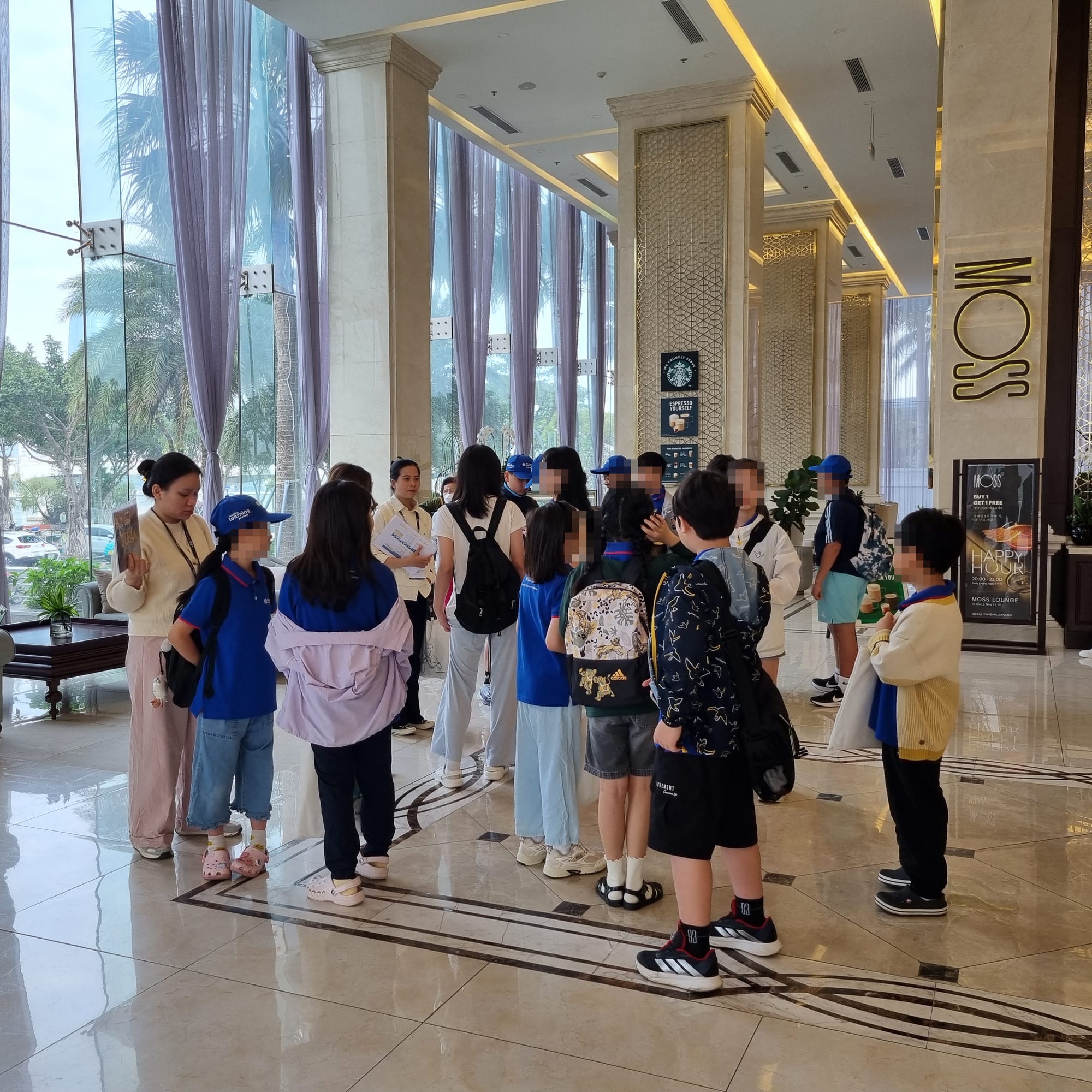 출발 전 호텔 1층 로비에 모여 반별로 정렬한 후, 줄을 맞춰 밴에 질서 있게 탑승합니다.