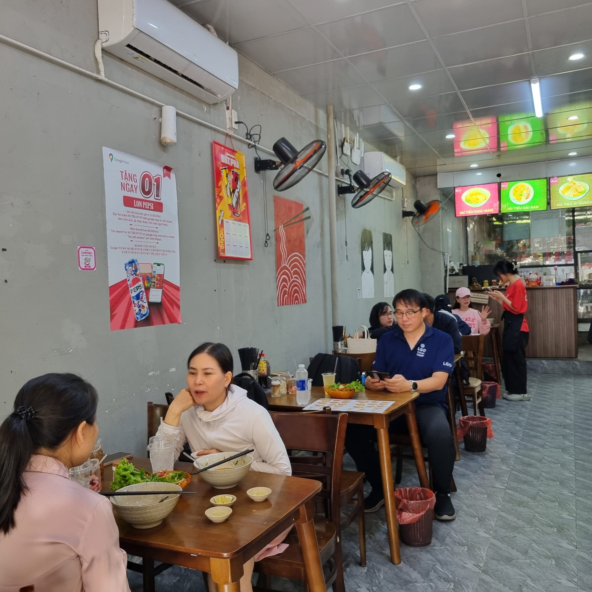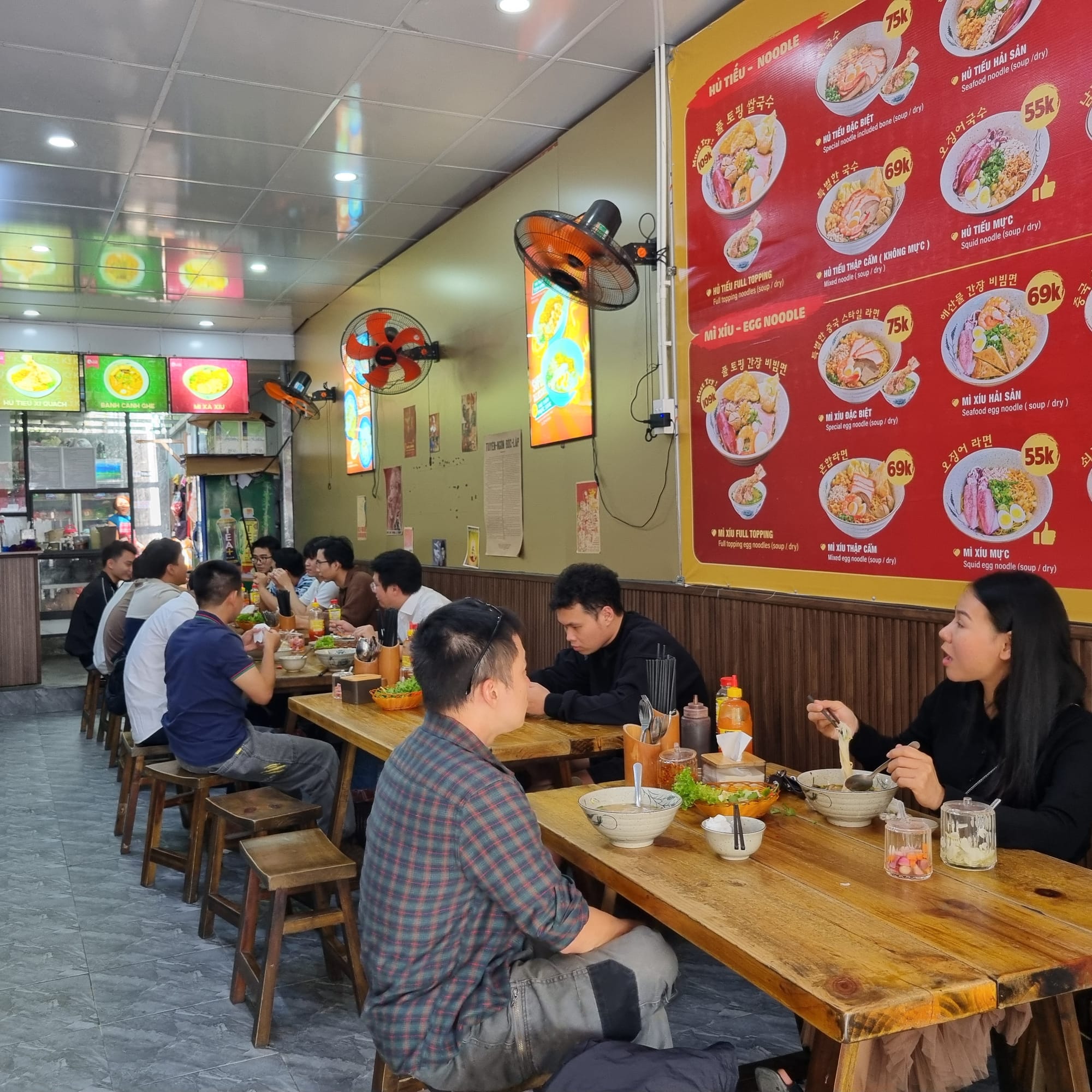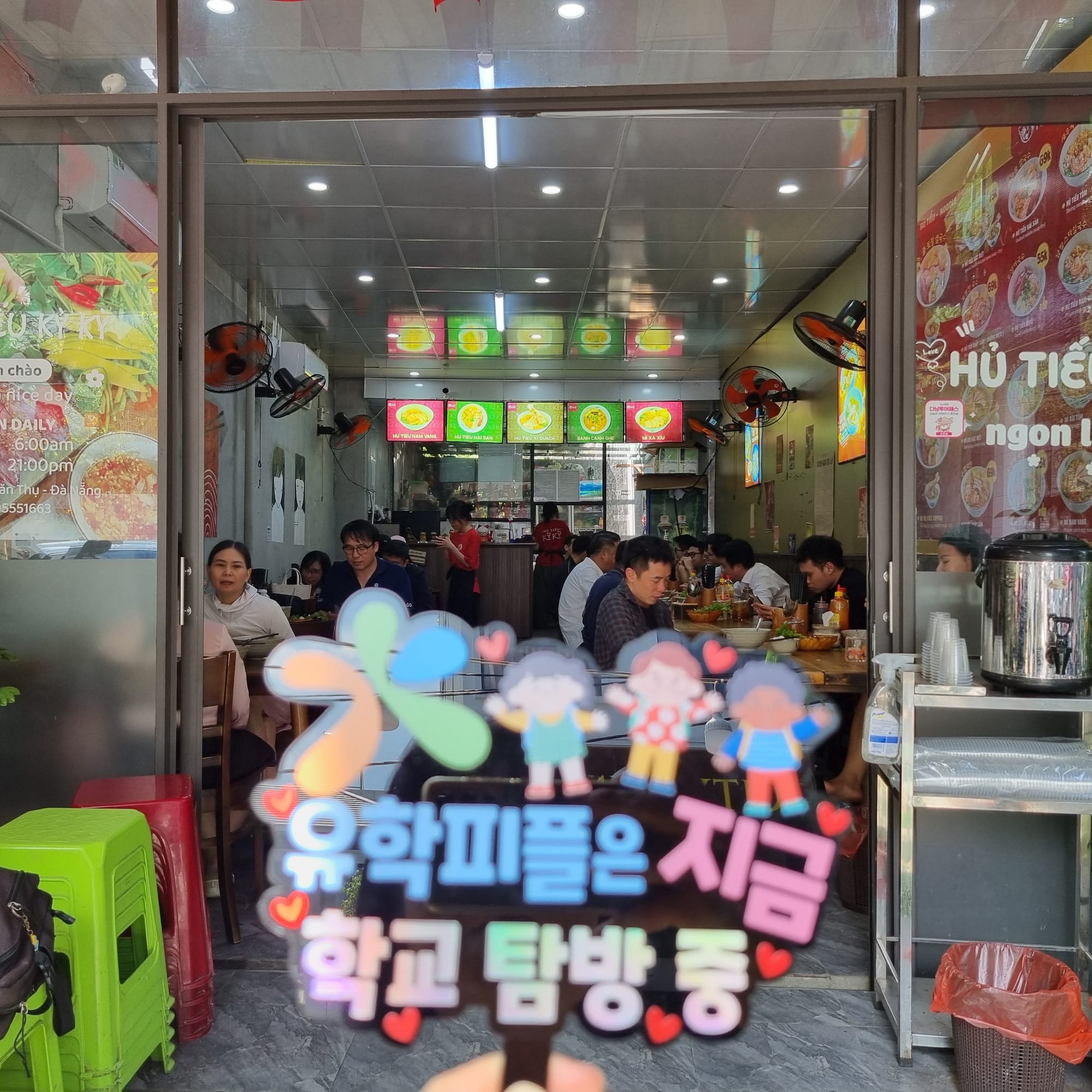 베트남에는 다양한 종류의 쌀국수가 있으며, 종류가 100가지가 넘는다고 알려져 있습니다. 사진에 보이는 식당은 오징어 쌀국수 등 현지인들이 즐겨 찾는 쌀국수 전문 맛집입니다.